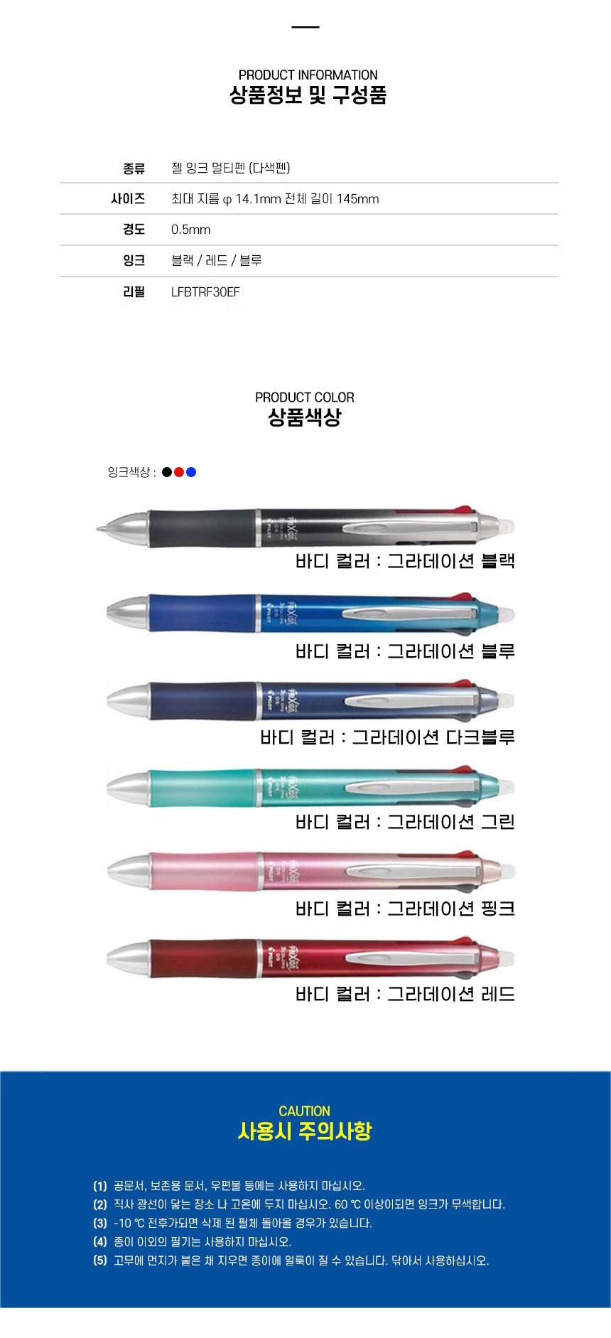 파이롯트 다색펜 프릭션 메탈 3색 지워지는 볼펜 0.5mm / 설래임 / 디비디비 / 구매하기 / 특가할인