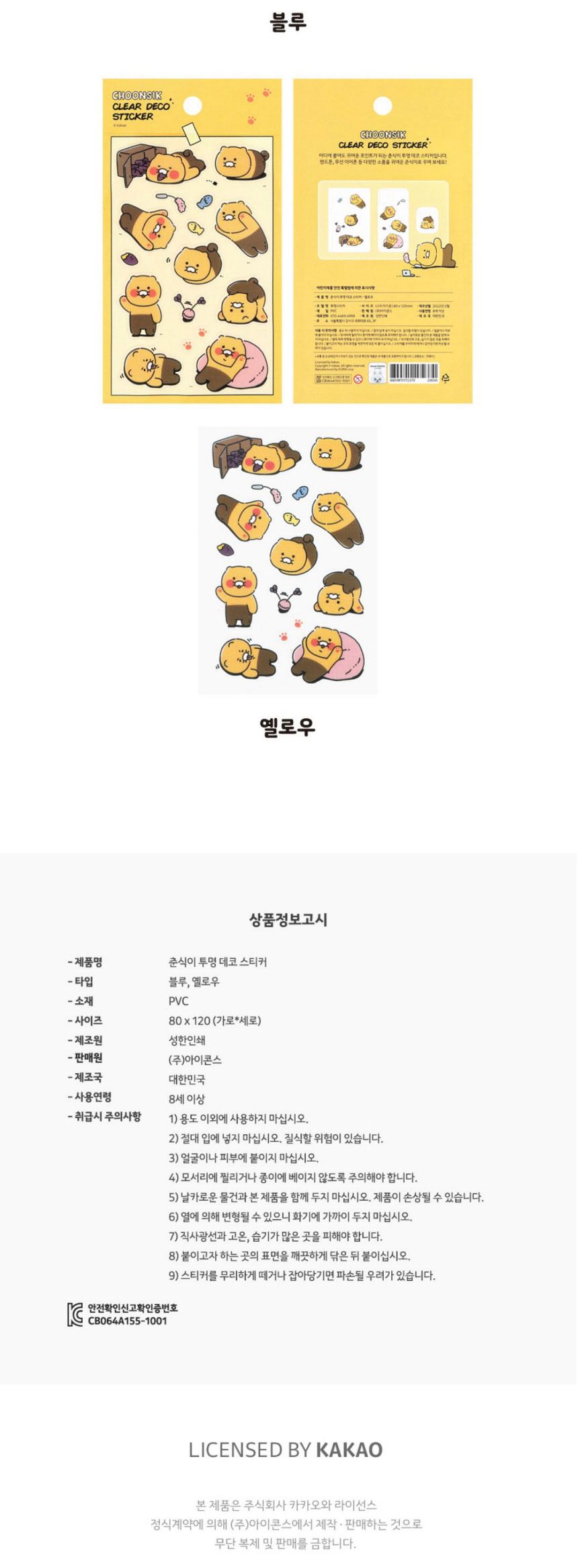 카카오프렌즈 춘식이 투명 데코 스티커 / 설래임 / 디비디비 / 구매하기 / 특가할인