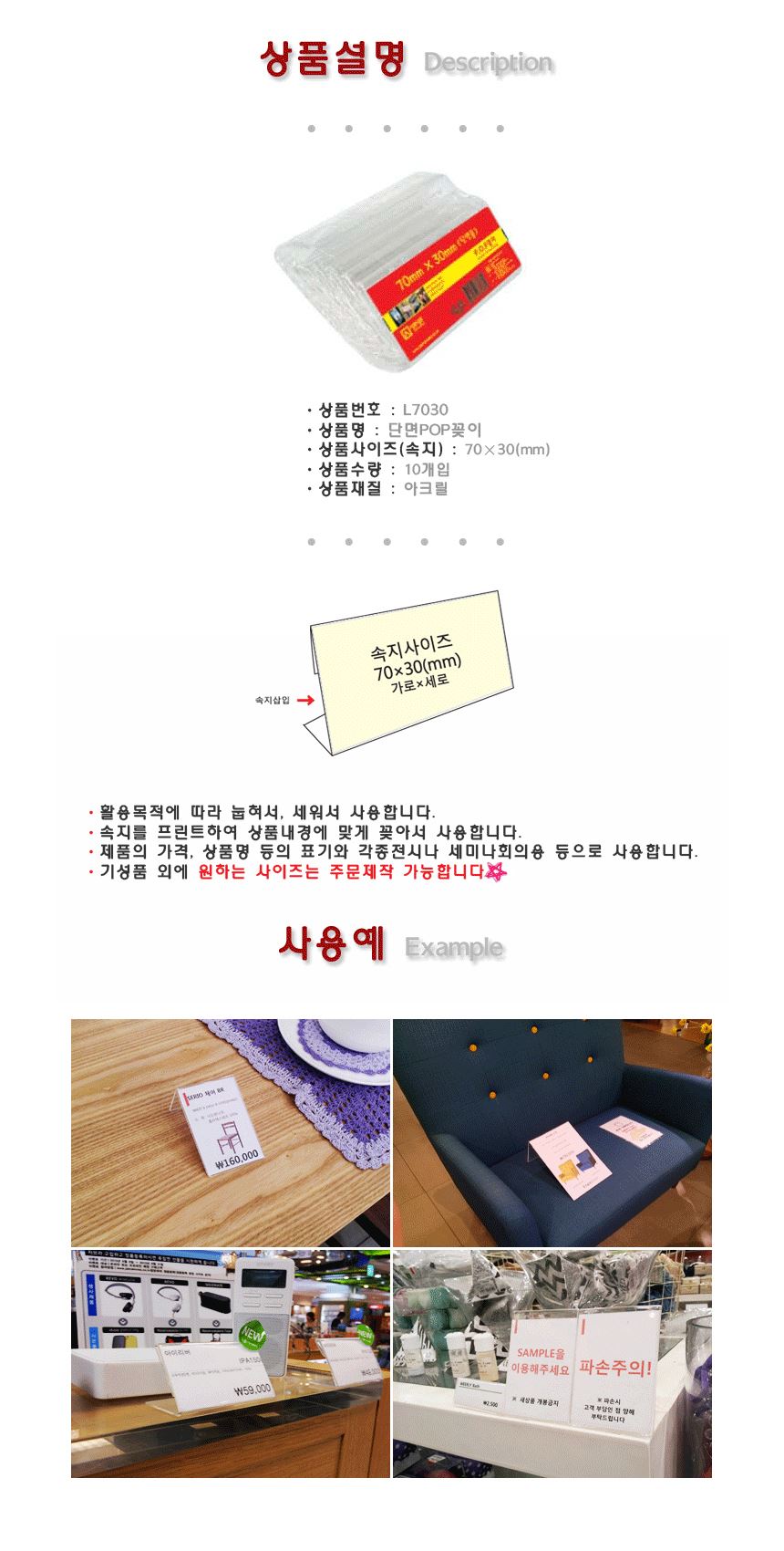 • 세모네모 아크릴 쇼케이스 POP꽂이 단면용 L7030 (70X30) 10개