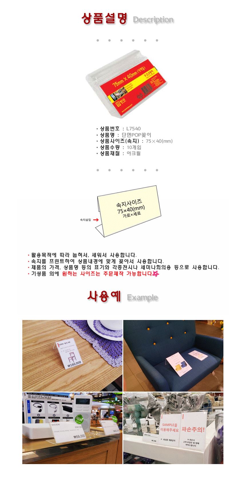 • 세모네모 아크릴 쇼케이스 POP꽂이 단면용 L7540 (75X40) 10개