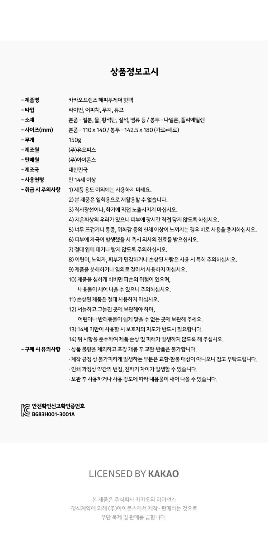 ㆍ 제품의 불량이 아닌 소비자의 귀책사유로 제품의 불량이 발생한 경우에는 환불, 교환을 받으실 수 없습니다.