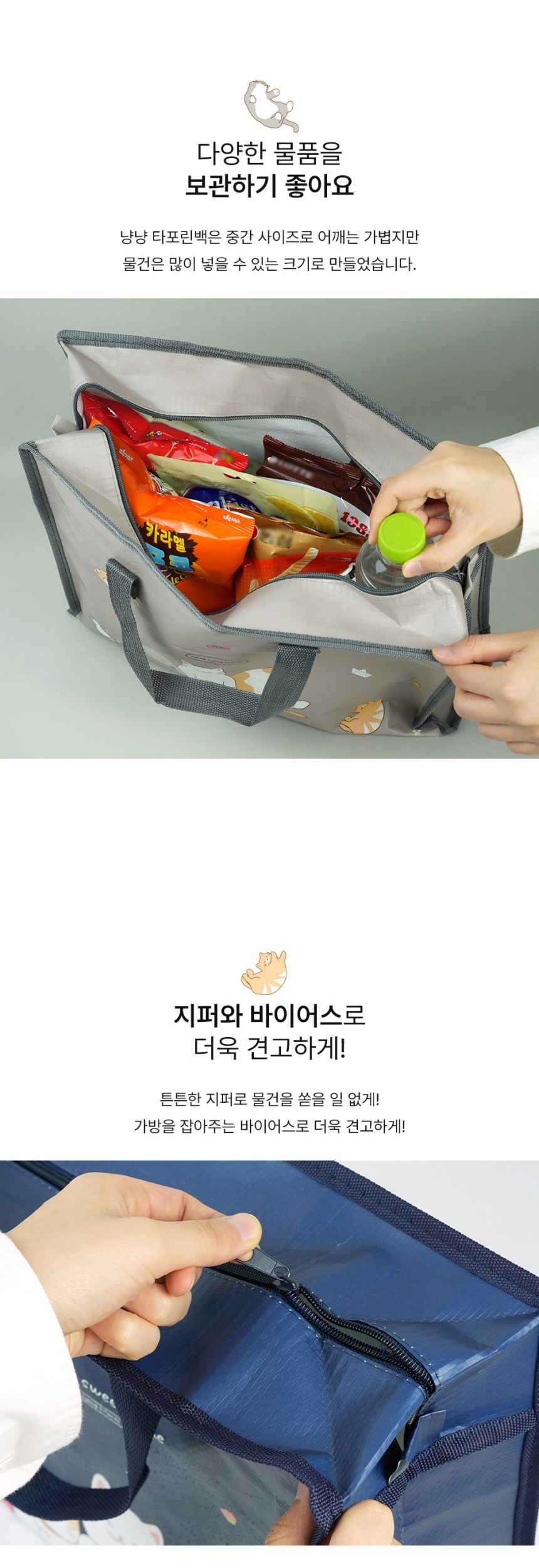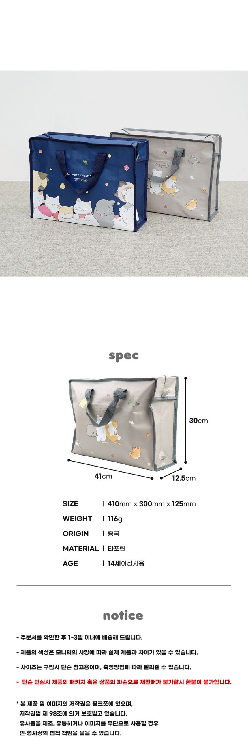 • 핑크풋 여행용 쇼핑 가방 냥냥 투명 타포린백 중