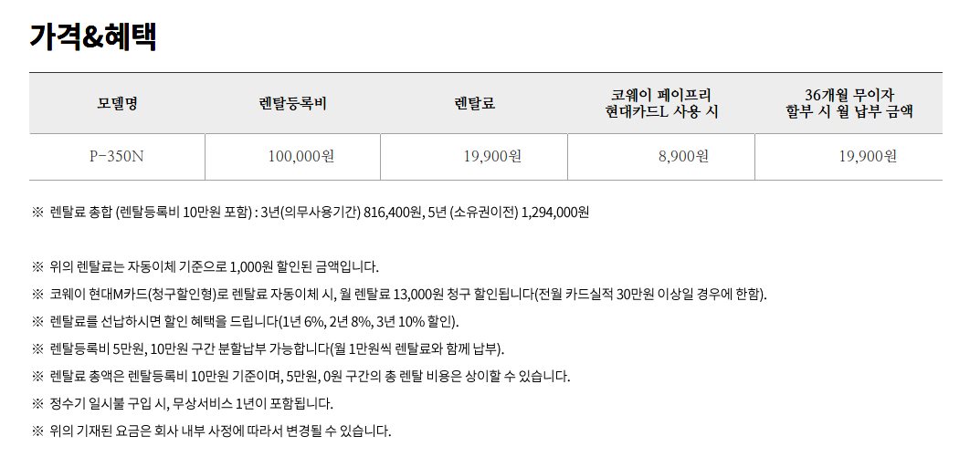 P-350N 코웨이 무전원 직수형 정수기 / 정수전용(온수X,냉수X) / 월 19,900원 / 6개월관리 / 정도렌탈님의 스토어 / 디비디비 / 구매하기 / 특가할인