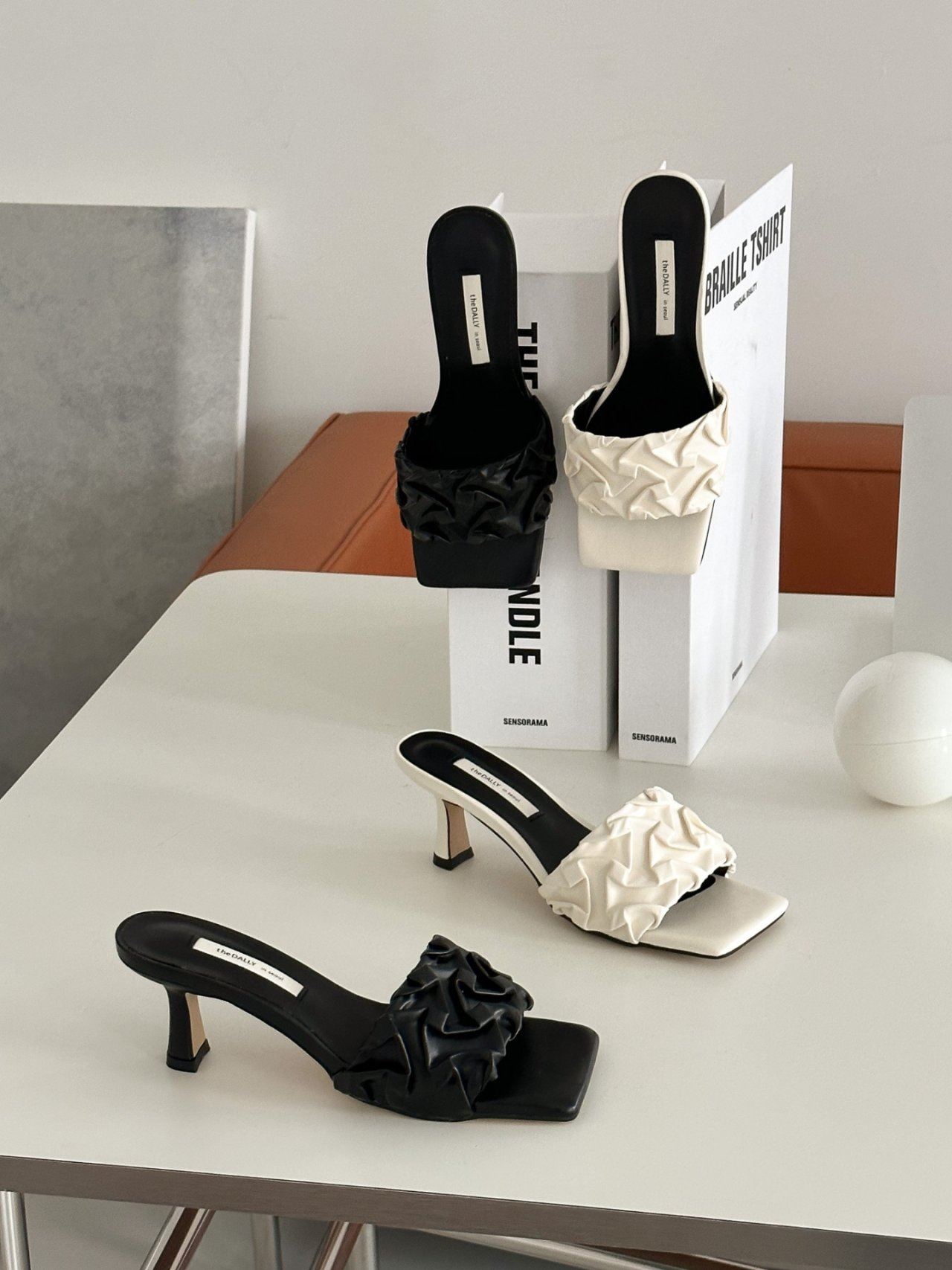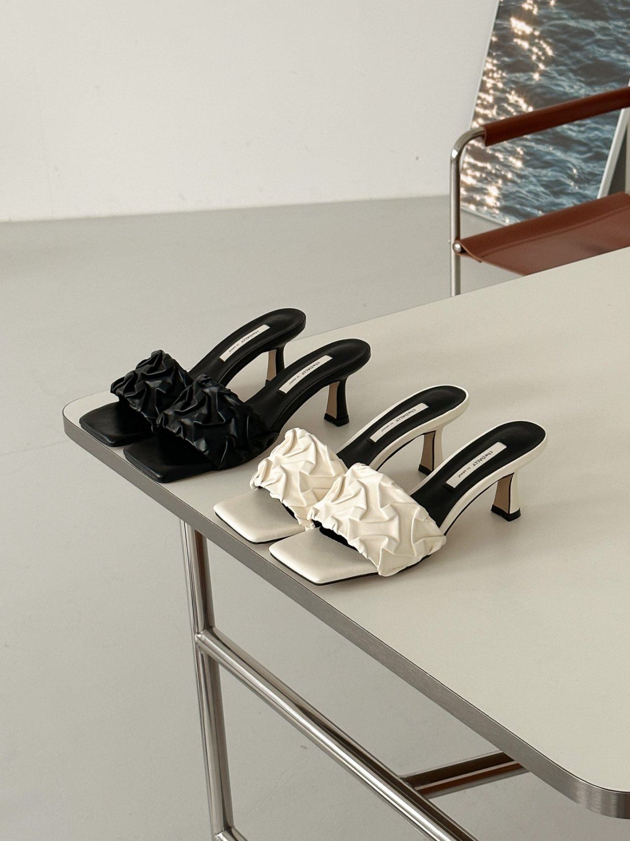 디테일 깔끔하며 고급스러운 주름 슬리퍼 힐