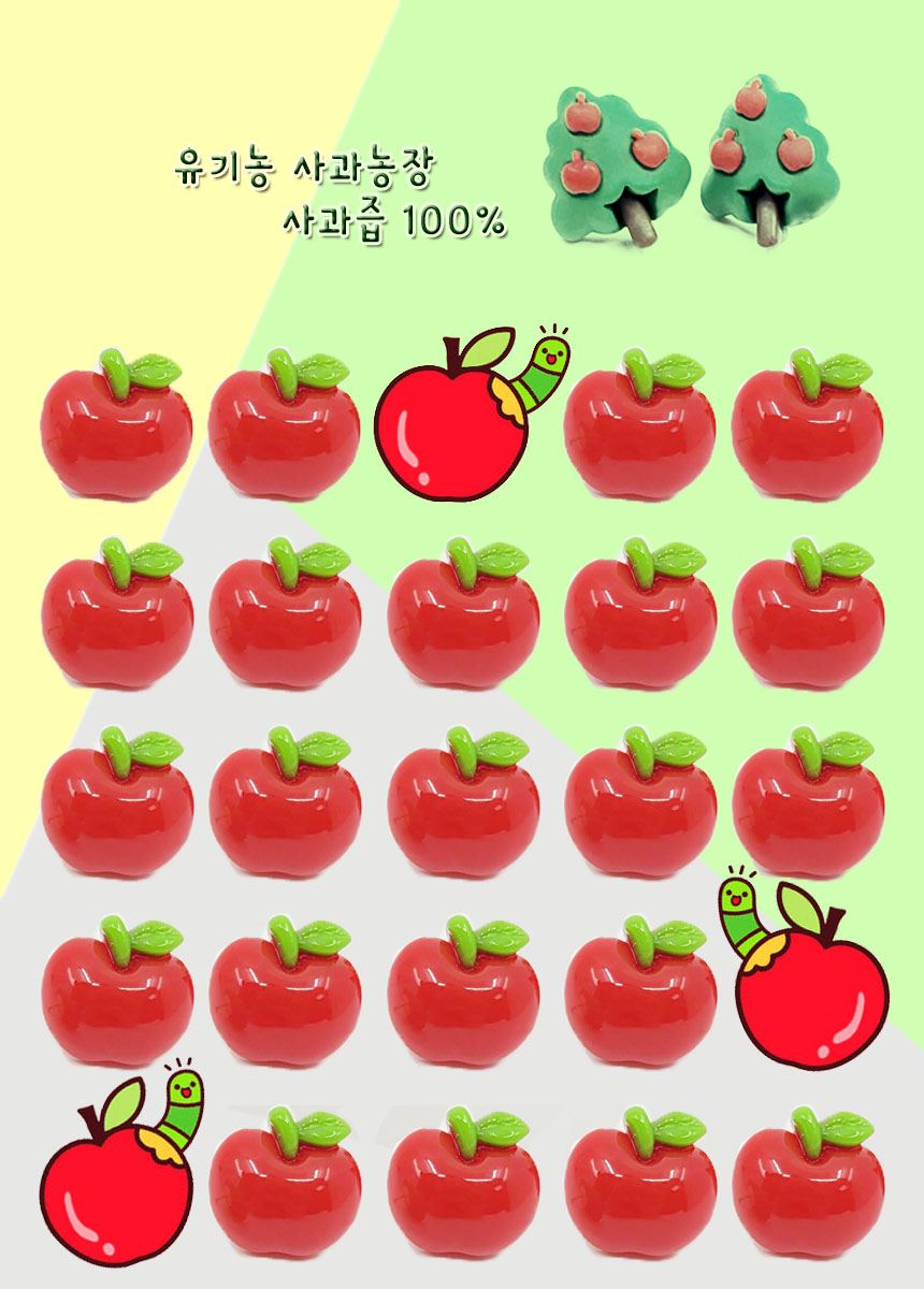 치수(cm, mm) 사과 : 가로 1.6cm * 세로 1.6cm / 사과나무 : 가로 1.5cm * 세로 1.7cm