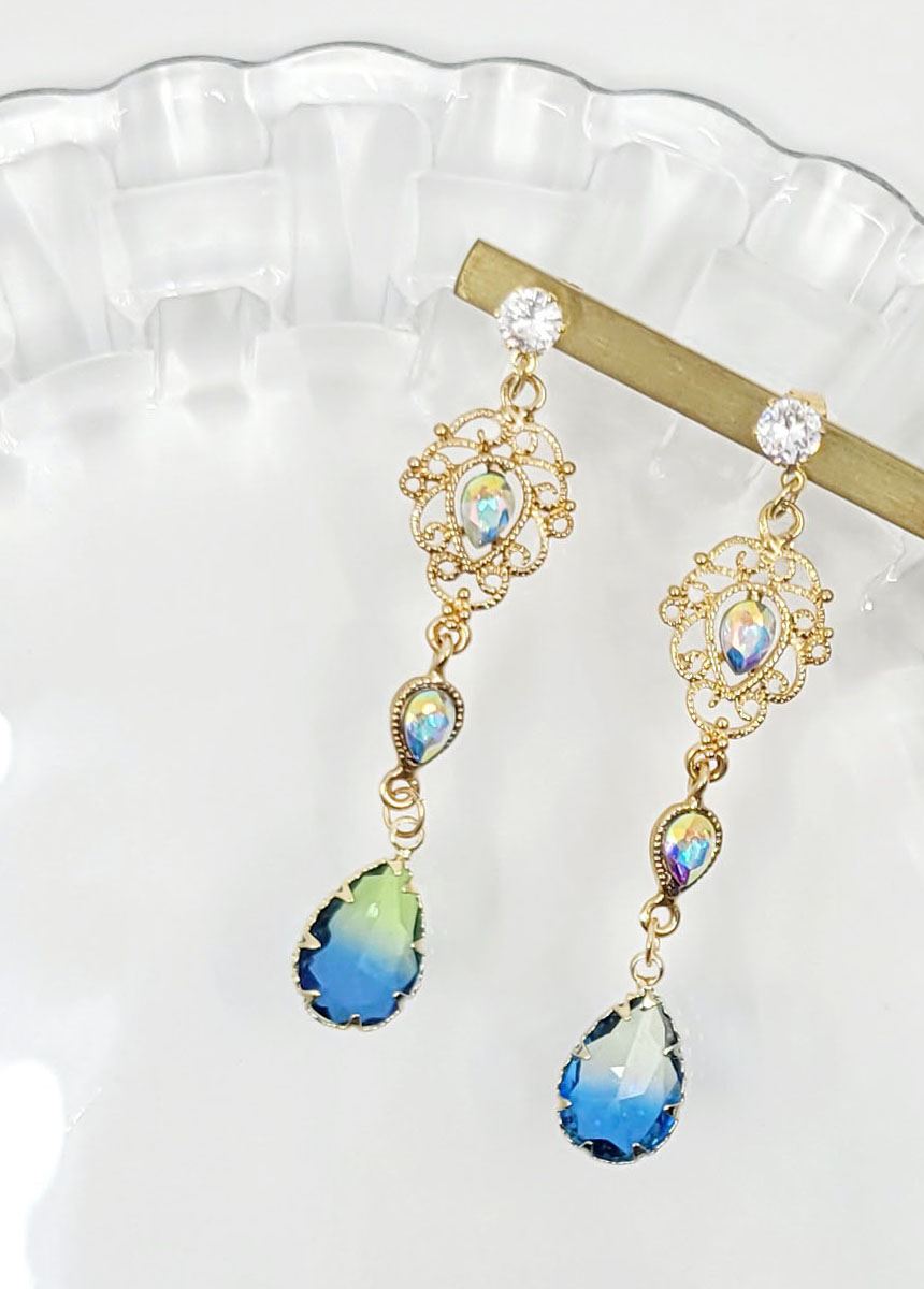 • 블루의 눈물 드롭귀걸이 은 귀고리 명품 큐빅 데일리 귀찌 이어링