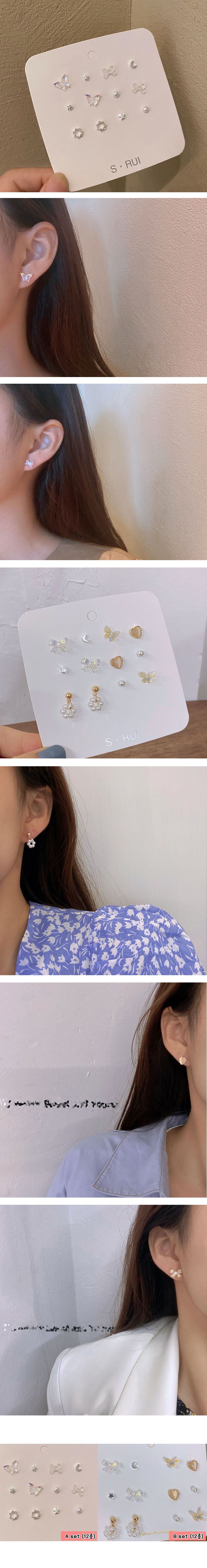 큐비 자개 데일리 귀걸이 세트 은 실버 이어링 귀찌 귀고리