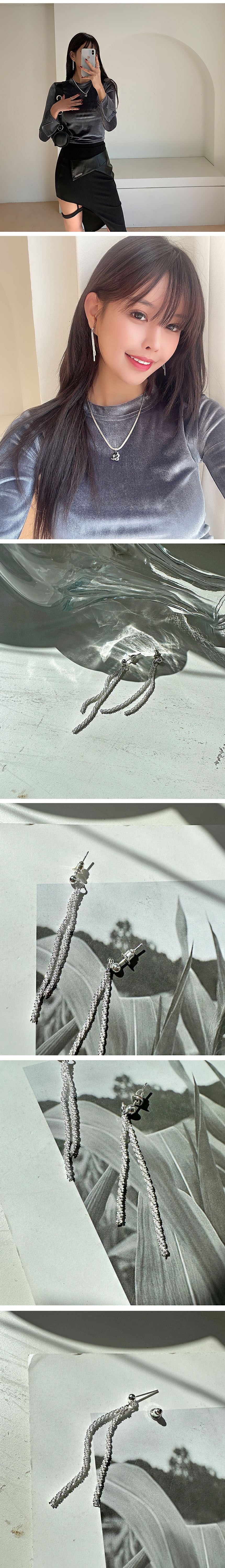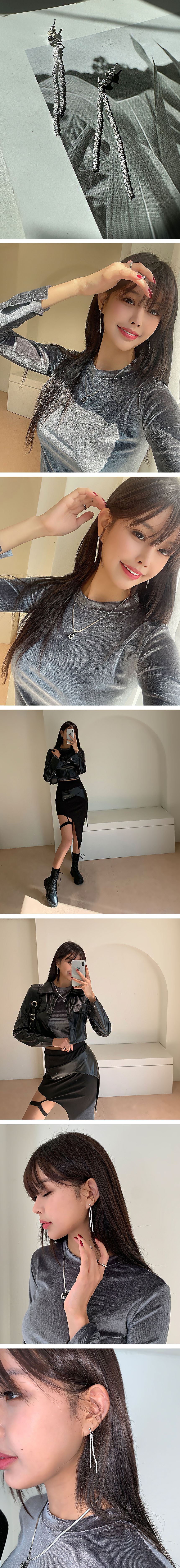 • 챠밍 체인 드롭 귀걸이 은 실버 귀고리 큐빅 데일리 이어링