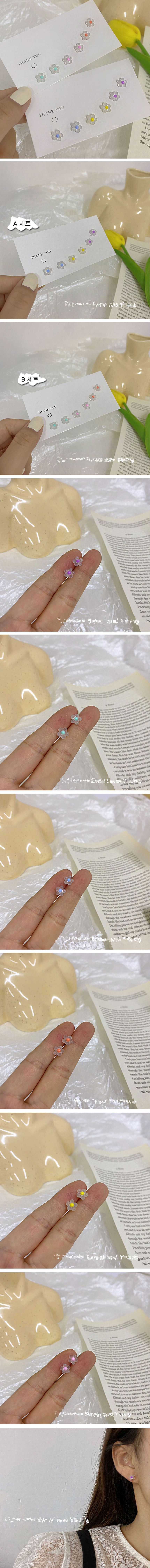 • 젤로 비즈 꽃 귀걸이 귀고리 은 실버 이어링
