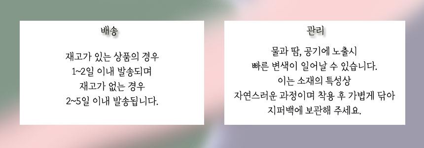 취급 시 주의사항 목걸이 소재 특성상 기타 오염물질에 닿지 않도록 주의 부탁드립니다.