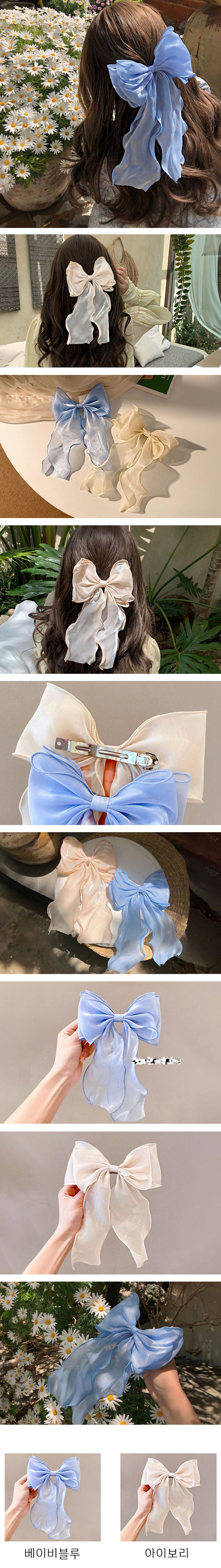 • 에리얼 쉬폰 리본핀 헤어악세사리 집게핀 왕 미니 머리집게