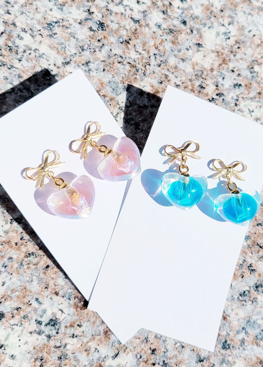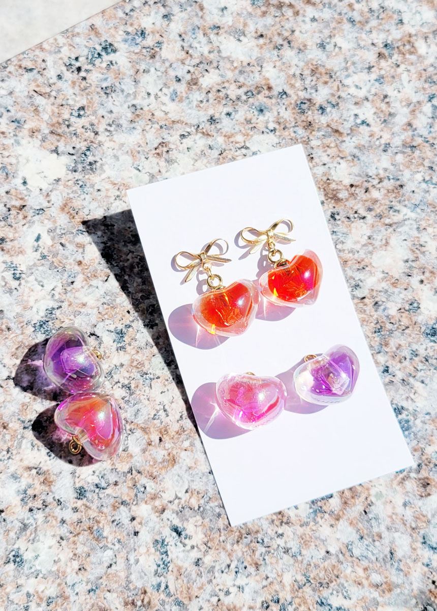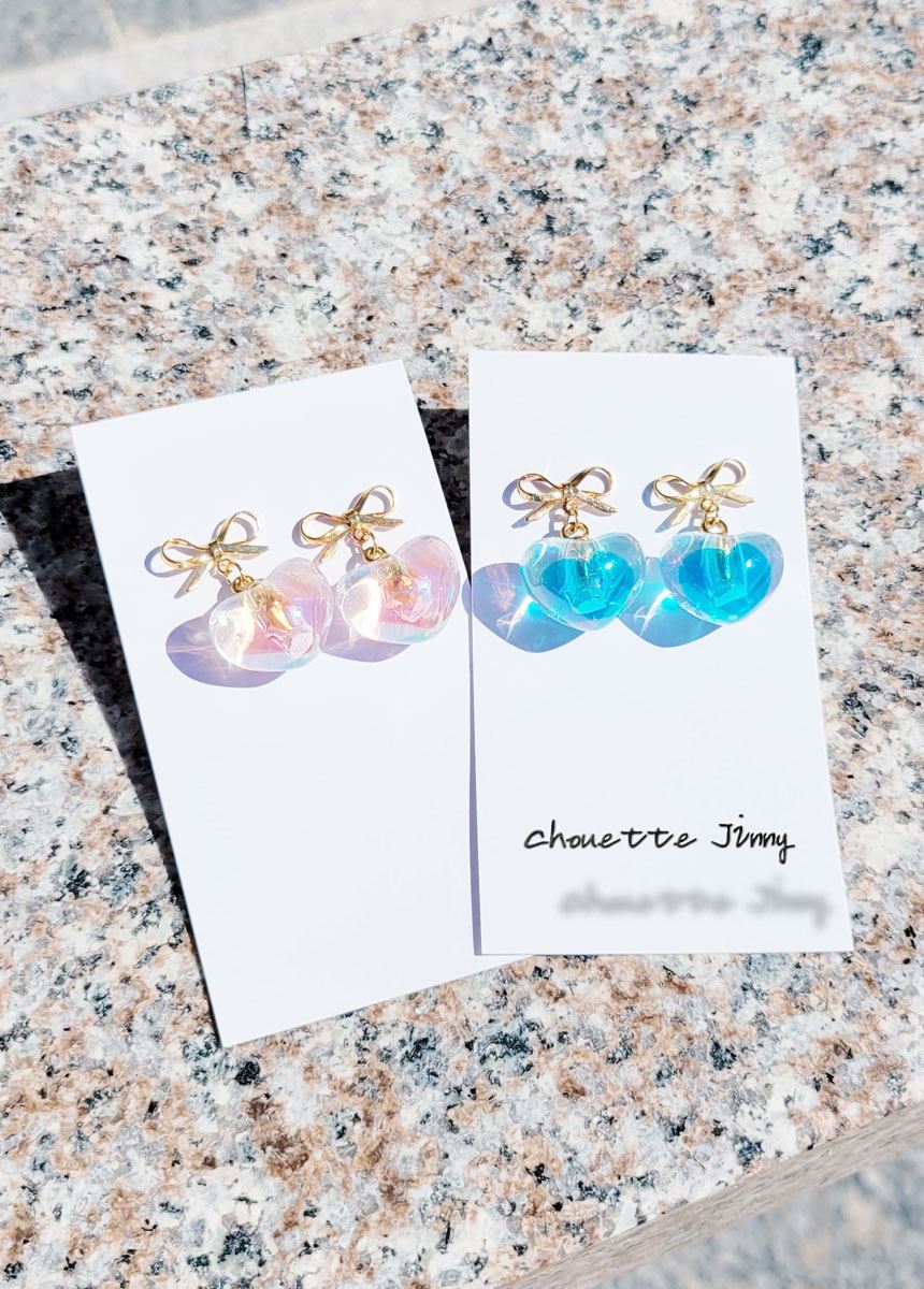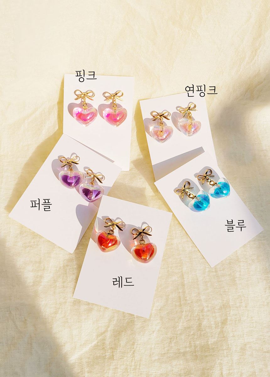 • 배우 전수진 협찬 유리알 하트 귀걸이 써지컬 이어링 피어싱 명품 귀찌 드롭 귀고리 세트