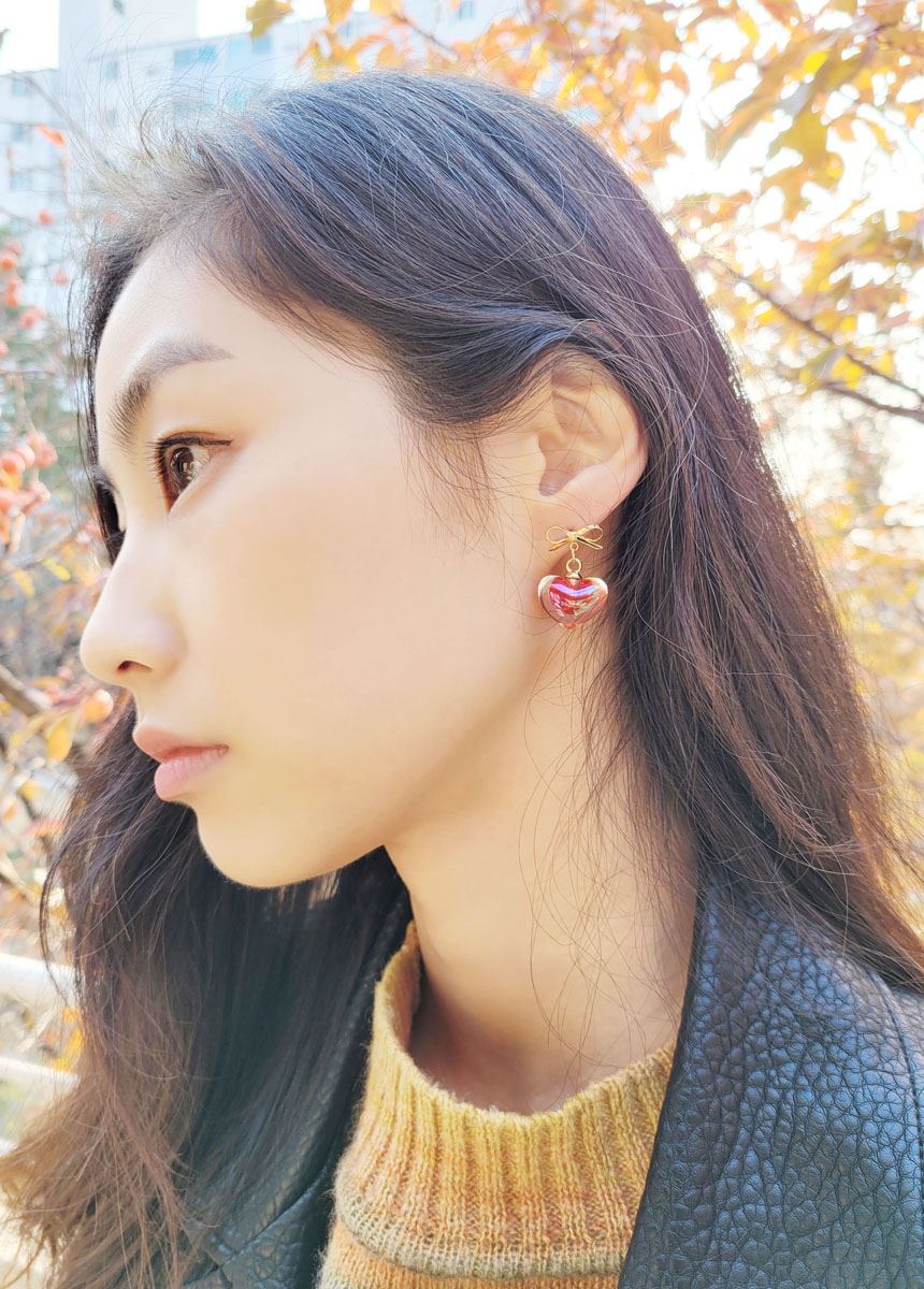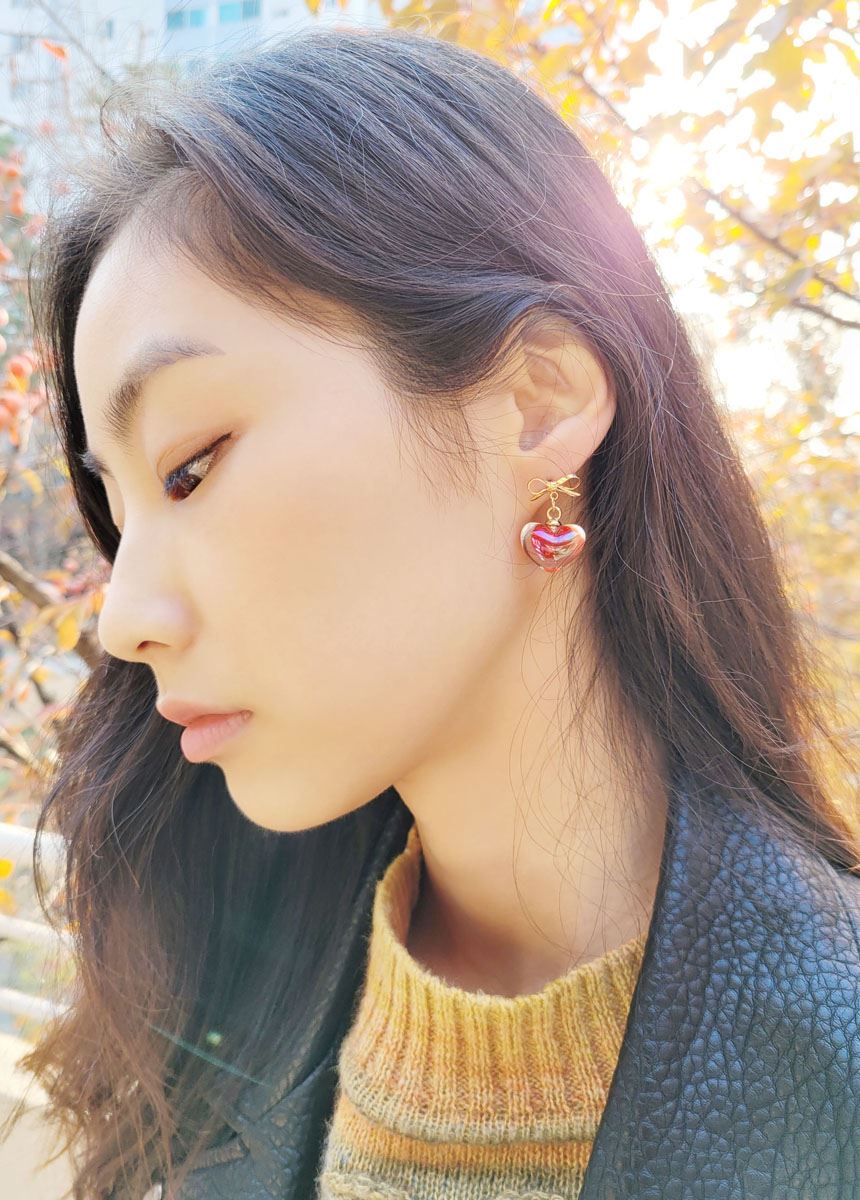 배우 전수진 협찬 유리알 하트 귀걸이 써지컬 이어링 피어싱 명품 귀찌 드롭 귀고리 세트