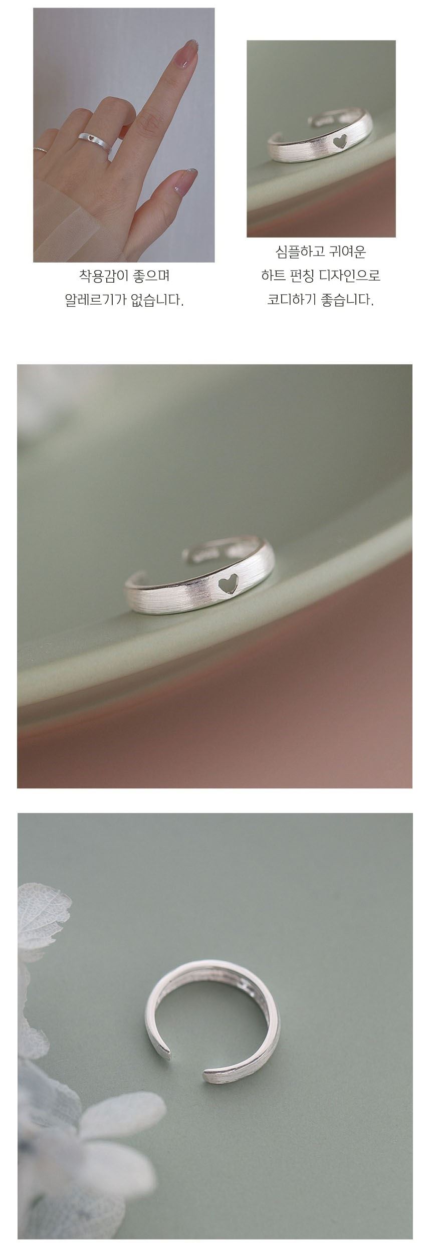 하트 타공 반지 패션 은 실반지 우정링 화이트골드 레이어드 실버925