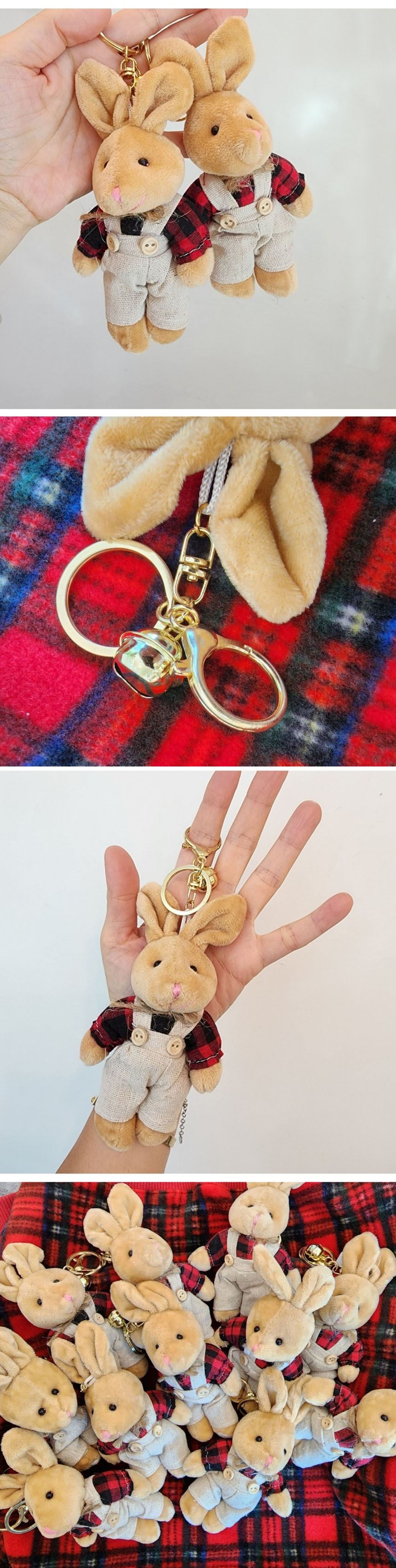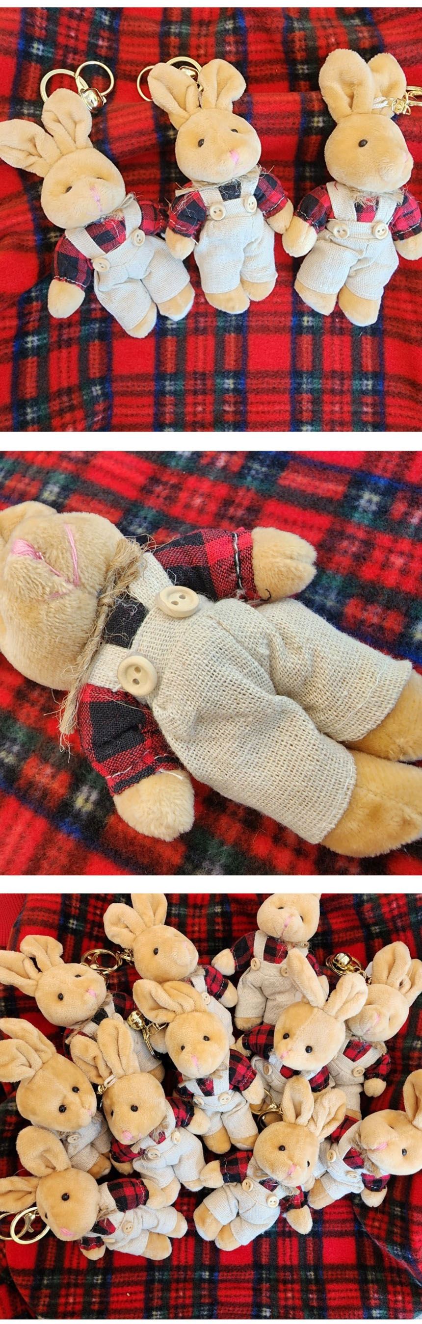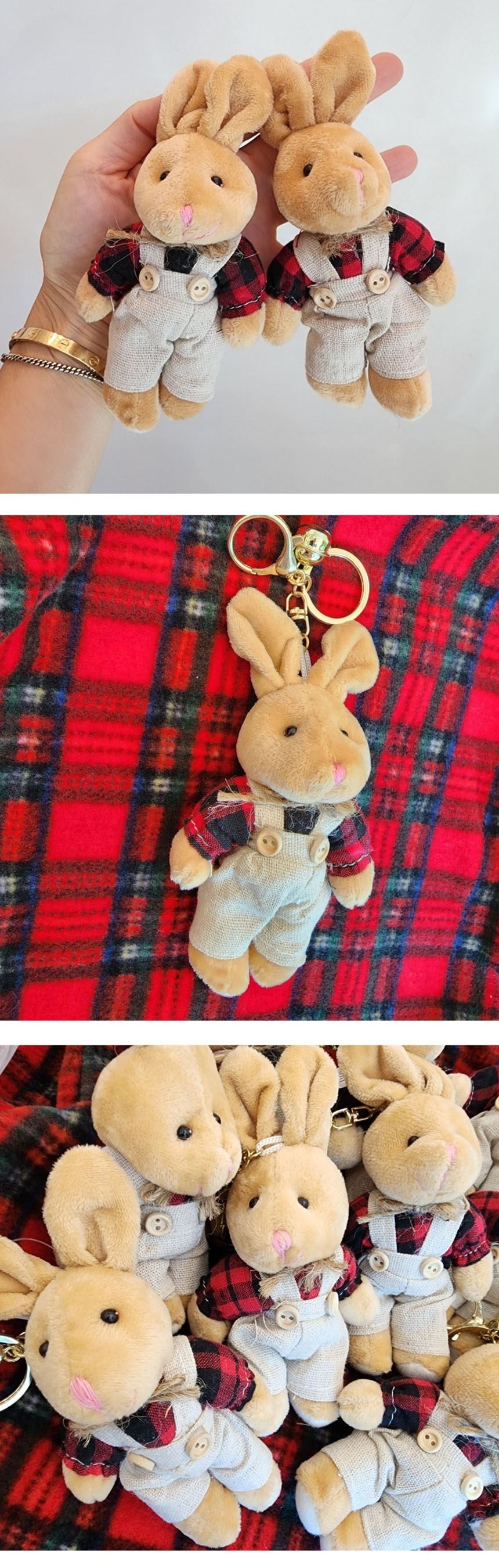 • 체크셔츠 토끼인형 키링 가방 고리 키홀더 핸드폰 에어팟 토끼 차키 액세서리