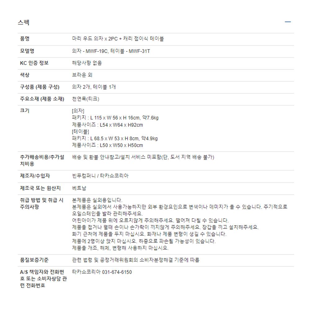 • 마리 야외용 접이식 테이블 의자세트 3p 원목 테라스 편의점 옥상 정원 나무의자 우드탁자 의자 x 2PC + 캐리 접이식 테이블 추천