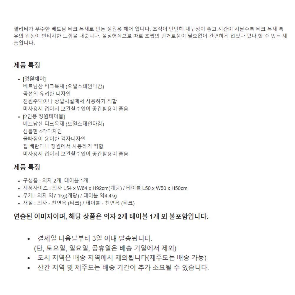 재질 : 의자 - 천연목 (티크) / 테이블 - 천연목 (티크)