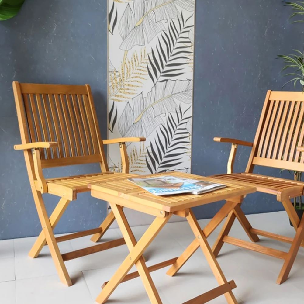 • 마리 야외용 접이식 테이블 의자세트 3p 원목 테라스 편의점 옥상 정원 나무의자 우드탁자