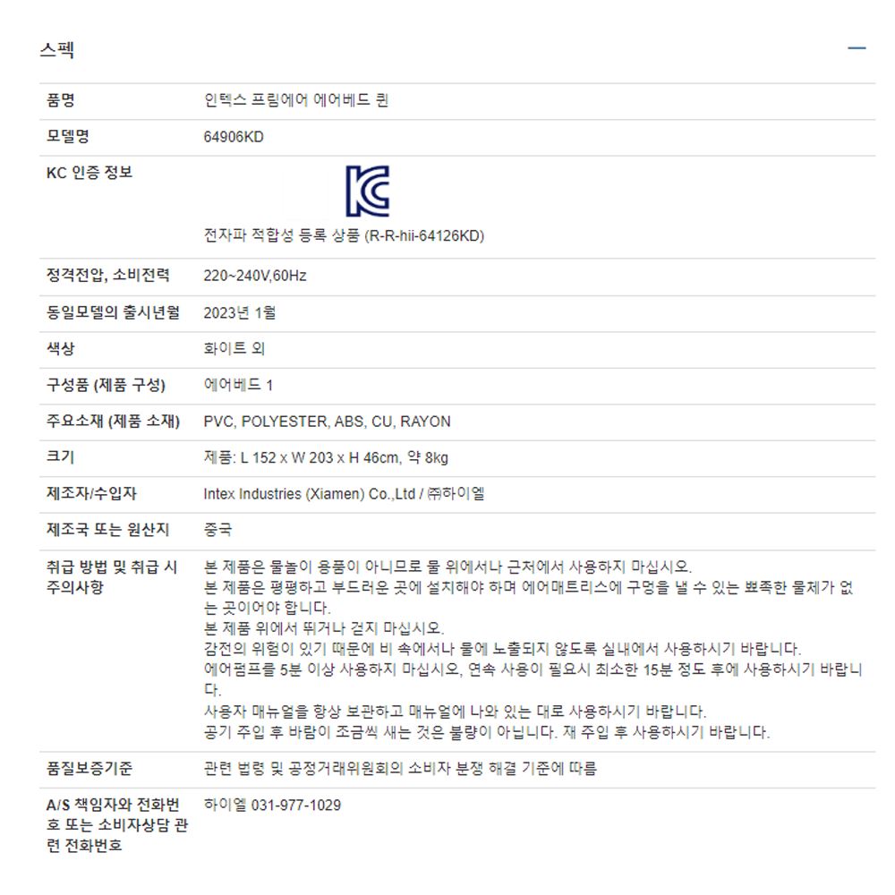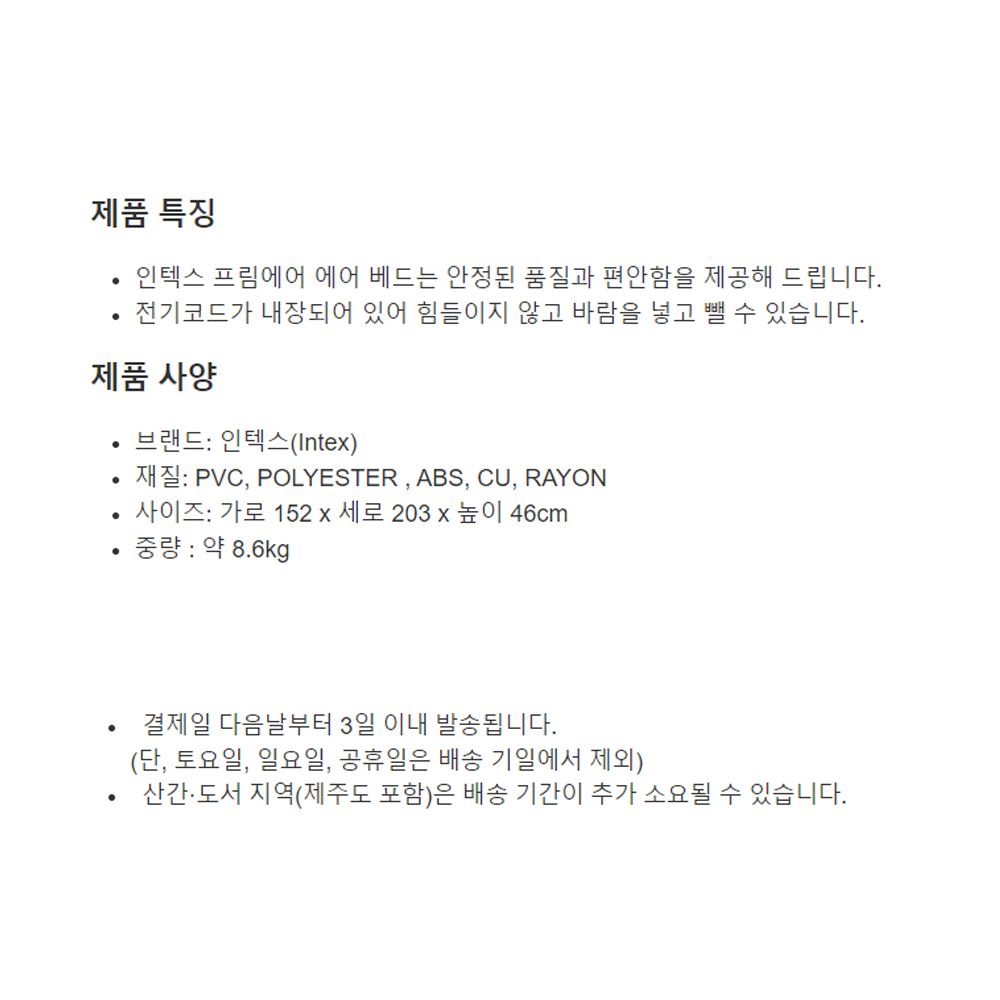• 인텍스 캠핑 에어매트 두꺼운 매트리스 자충 텐트 차박 에어침대 베드 퀸 더블 2인용 매트 프림에어 에어베드 64906KD Intex 추천