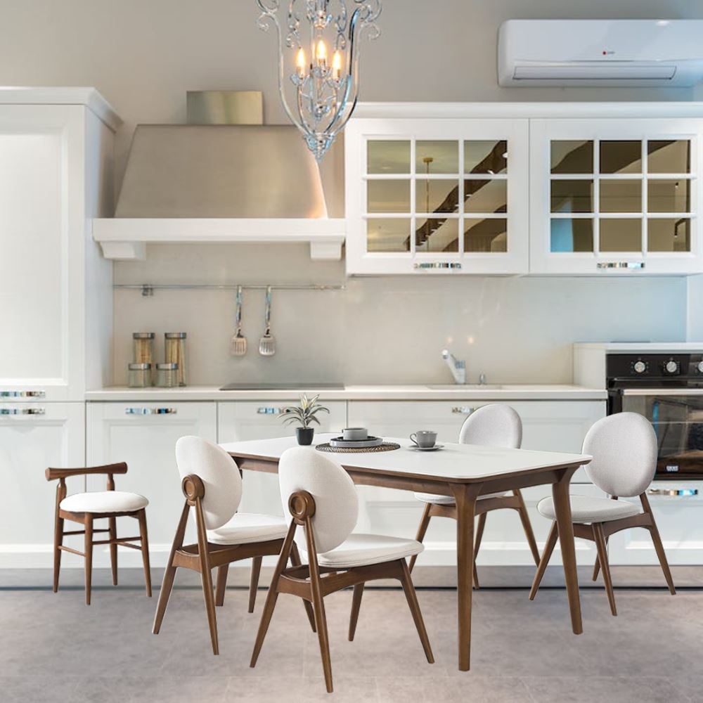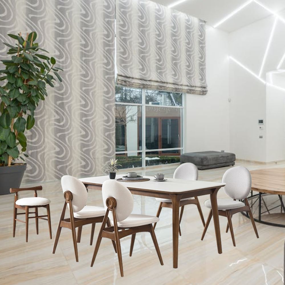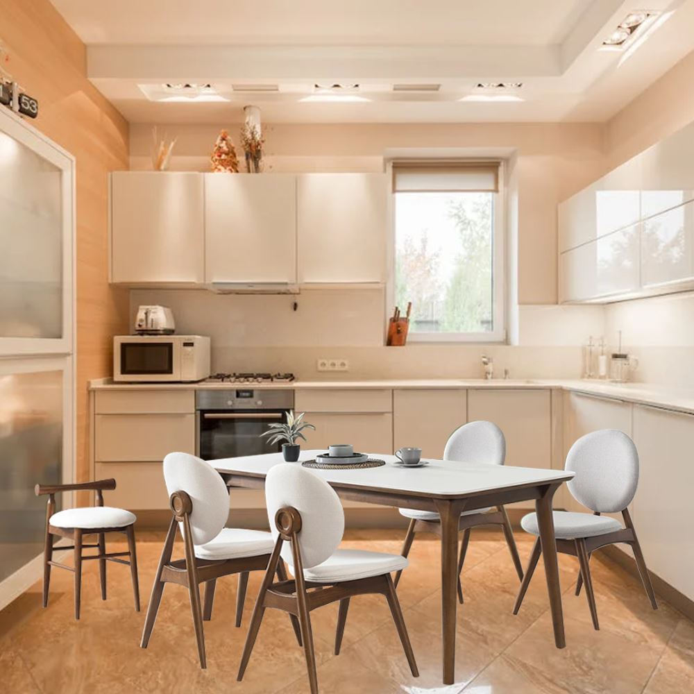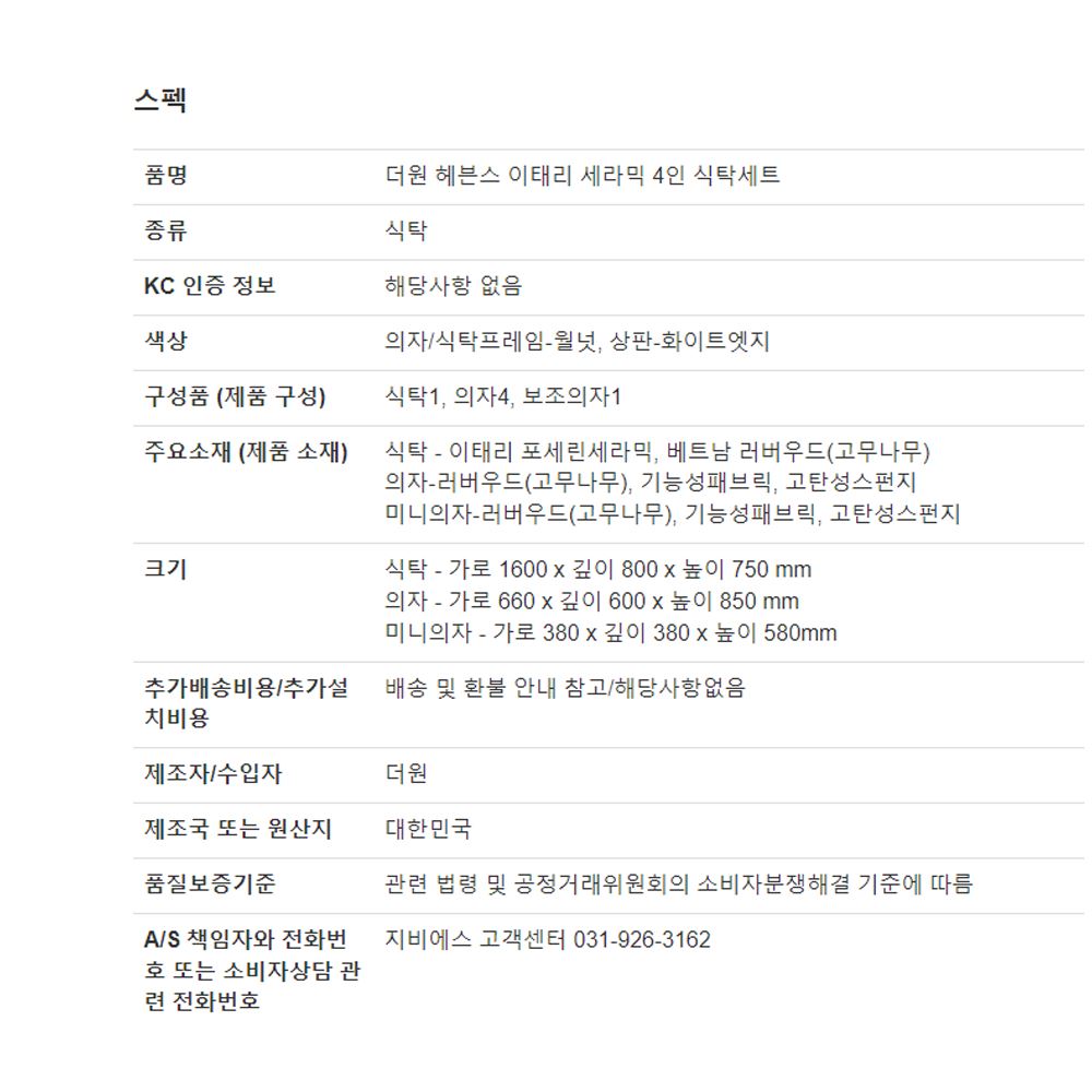 소재 : 식탁 - 이태리 포세린세라믹, 베트남 러버우드(고무나무)/의자-러버우드(고무나무), 기능성패브릭, 고탄성스펀지/미니의자-러버우드(고무나무), 기능성패브릭, 고탄성스펀지