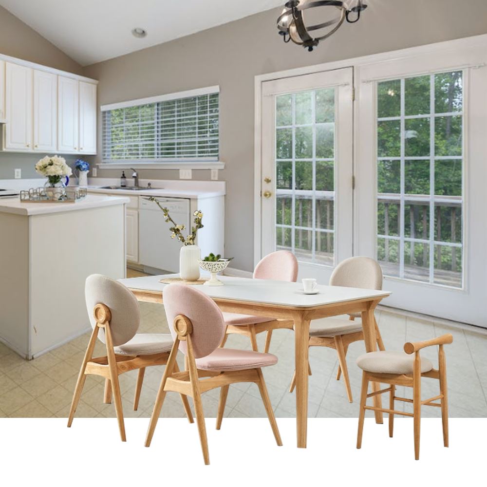 색상 : 색상 : 의자,식탁프레임-내추럴/상판-화이트/의자-화이트2,핑크2, 미니옐로우의자1