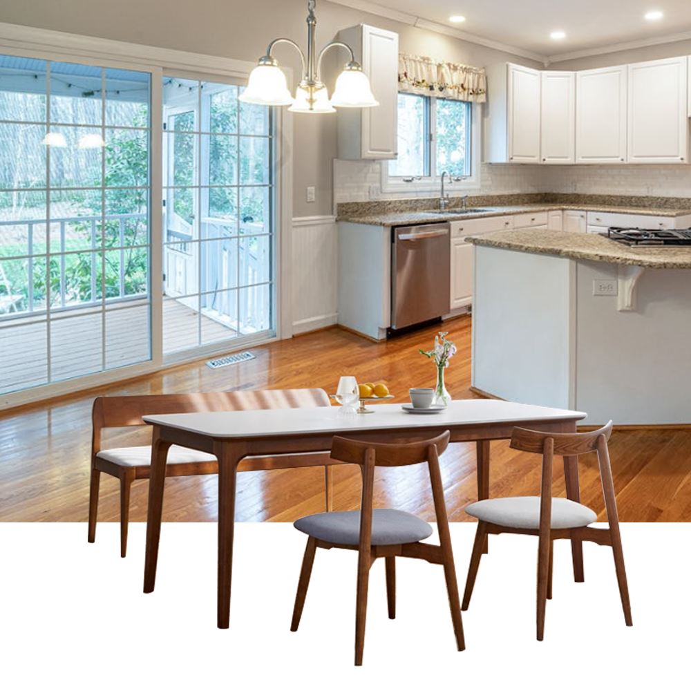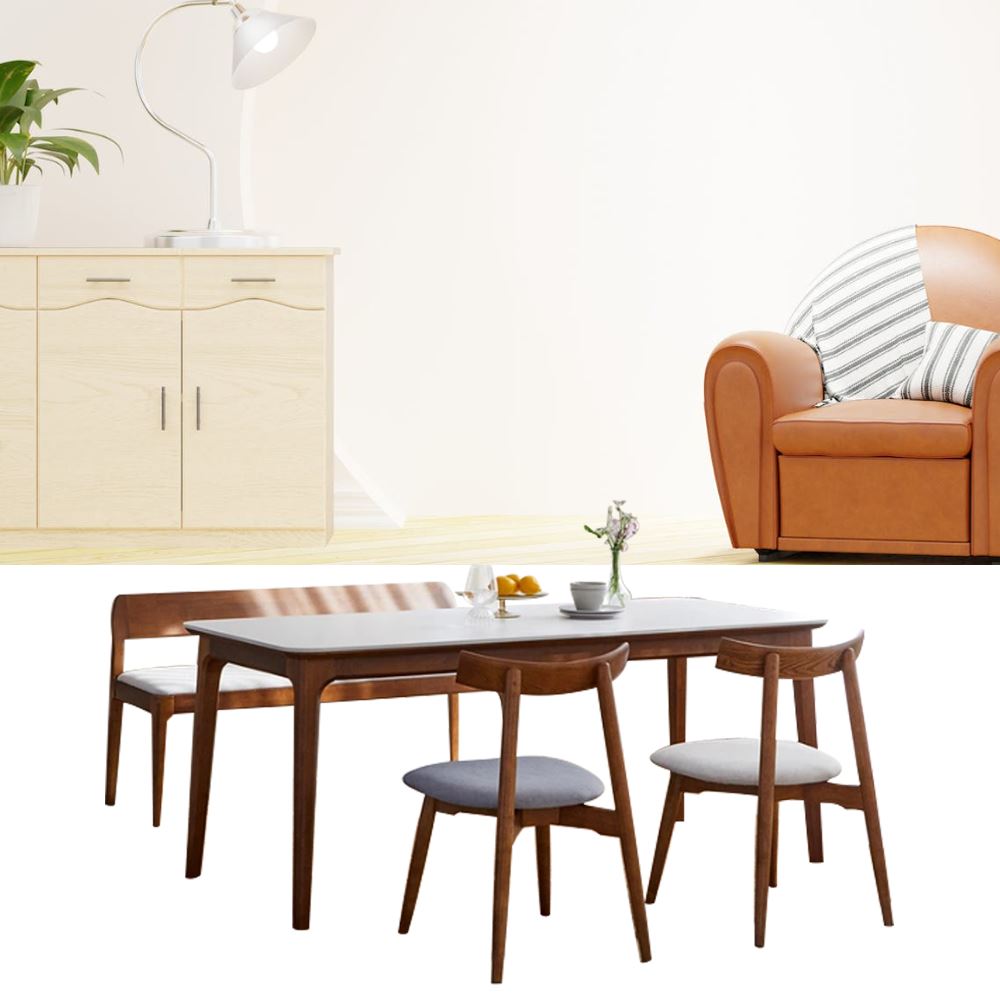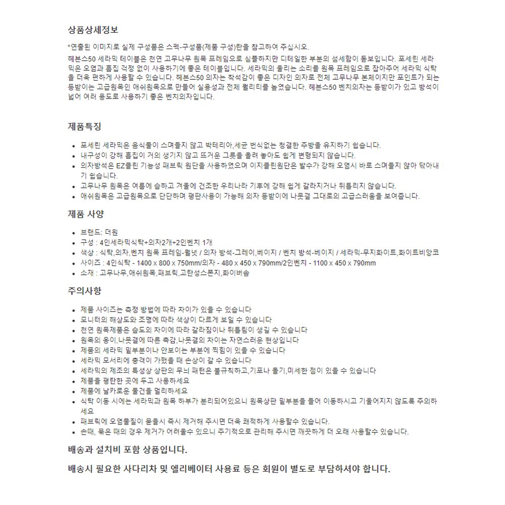색상 : 식탁,의자,벤치 원목 프레임-월넛 / 의자 방석-그레이,베이지 / 벤치 방석-베이지 / 세라믹-무지화이트,화이트비앙코