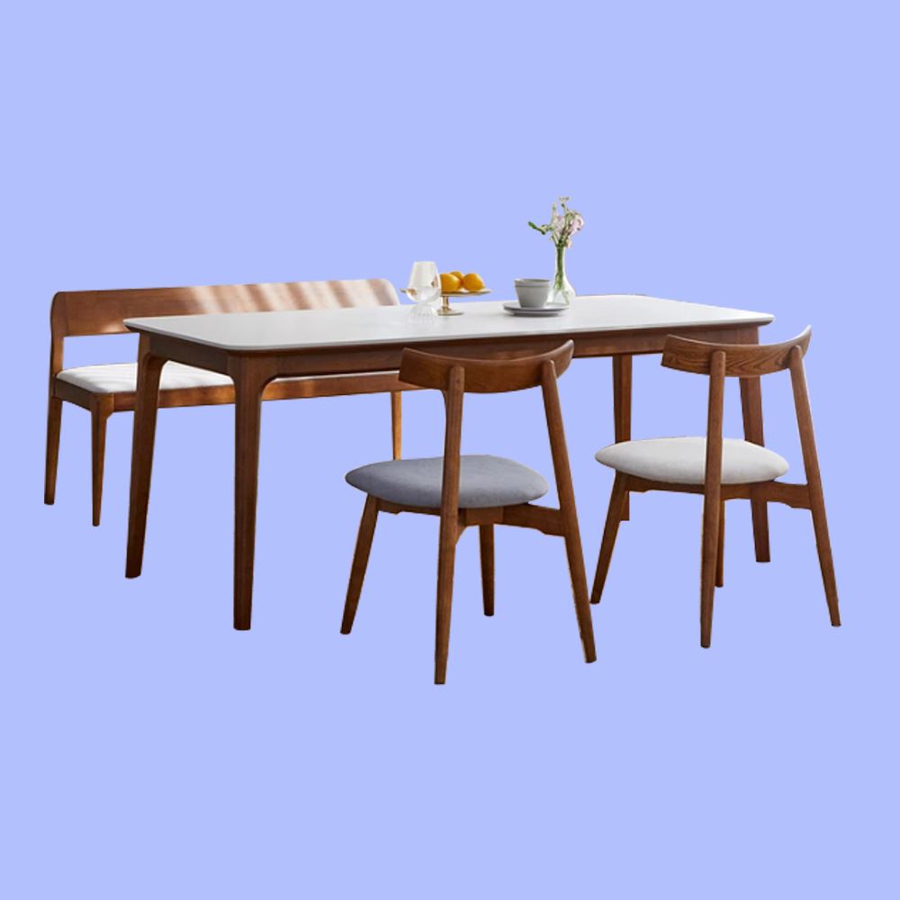 더원 4인용 포세린 세라믹식탁 세트 원목 식탁 사각 테이블 패브릭 의자 벤치형 1400