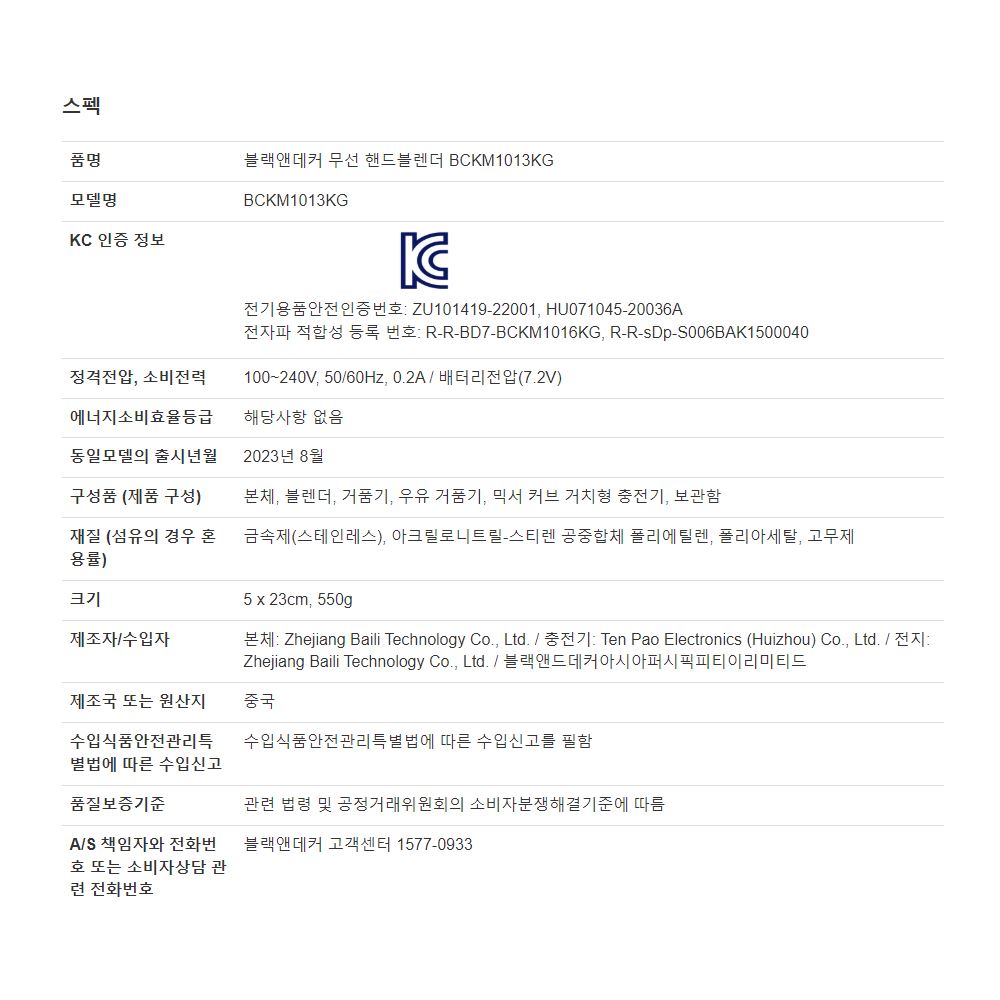 • 블랙앤데커 무선 핸드 블랜더 블렌더 핸드믹서기 이유식 얼음 가정용 업소용 소형 미니믹서기 BCKM1013KG 추천