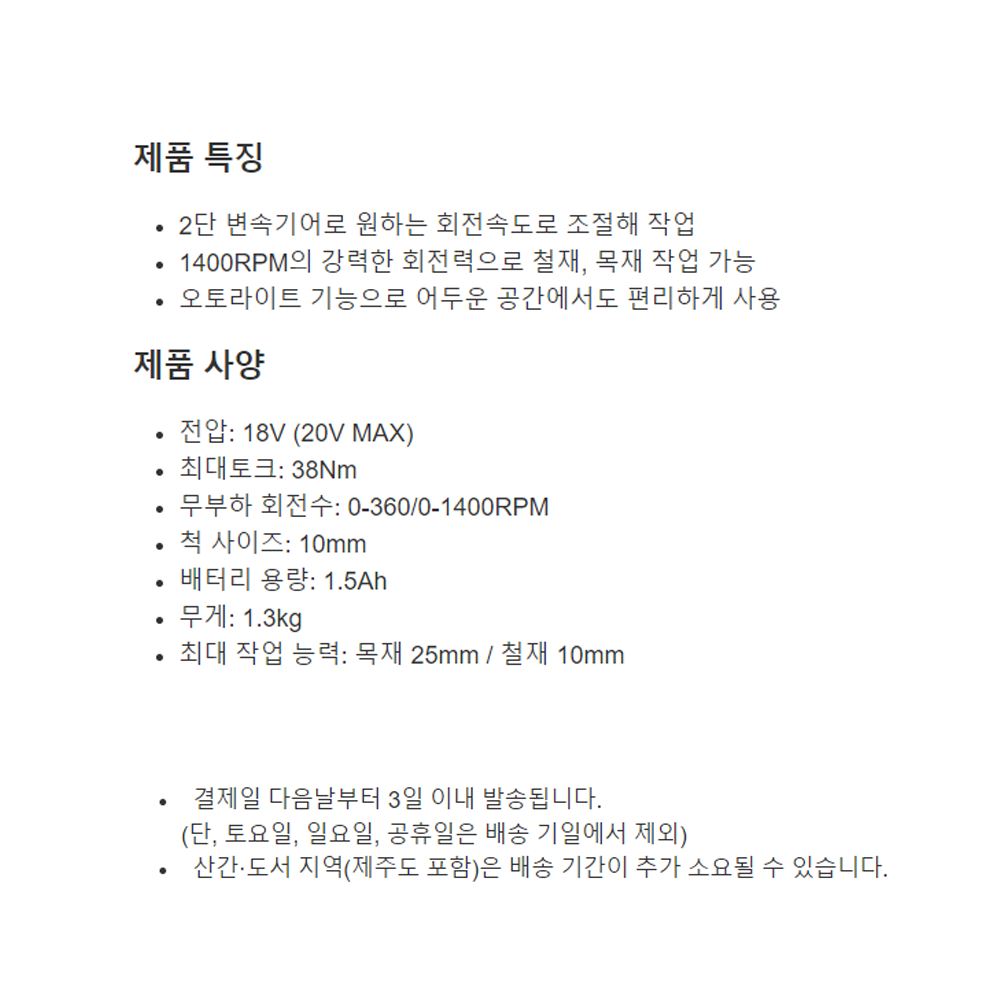 20V MAX 드릴드라이버, 전용충전기, 휴대용 공구가방, 20V MAX 배터리, 목재용 드릴비트 6개,