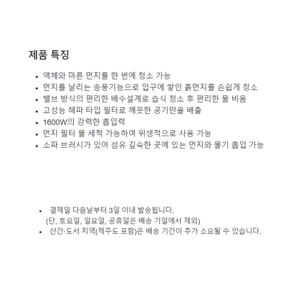 액체와 마른 먼지를 한번에 청소해 보세요.