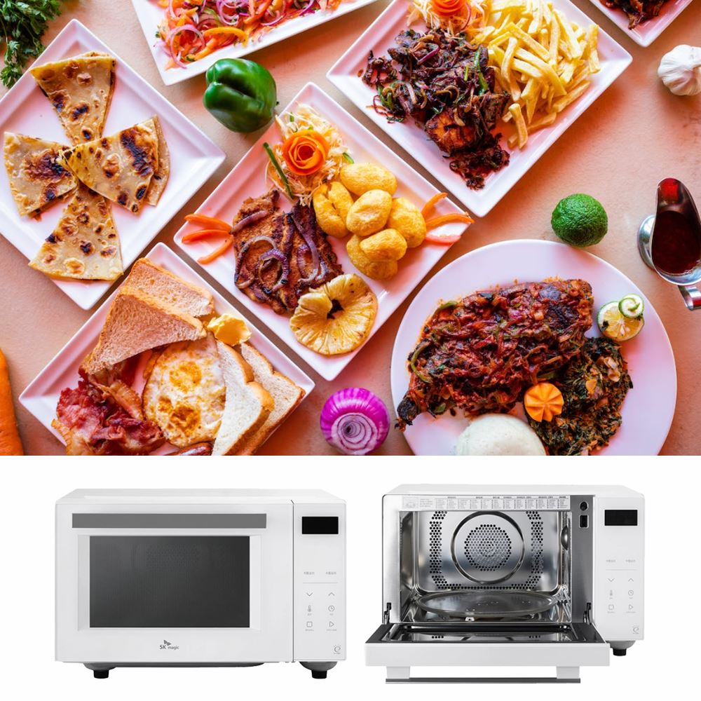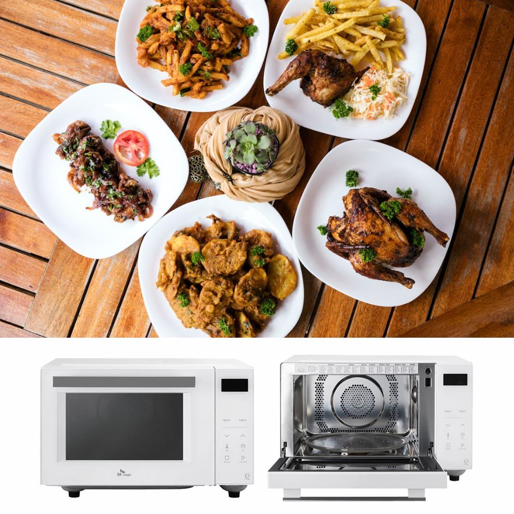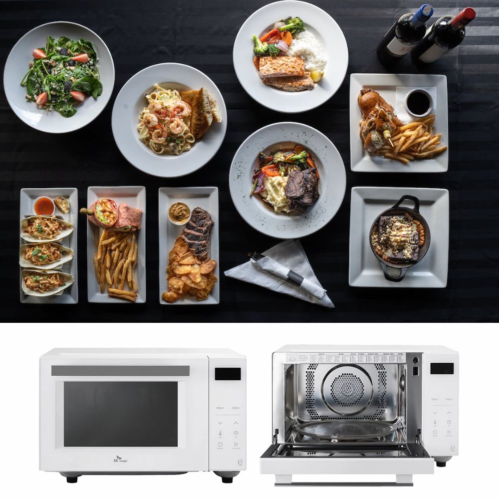 에어프라이어 + 전자레인지 + 오븐 + 그릴 + 베이킹 + 간편식 + 쾌속해동 = SK매직 에어프라이어 오븐