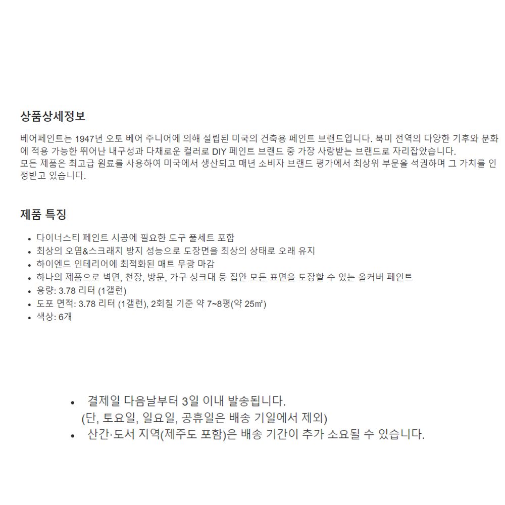 • 베어 무광 수성 페인트 3.78L 브러쉬 롤러 도구세트 실내벽면 천장 도어 몰딩 싱크대 방문 페인트 다이너스티 추천