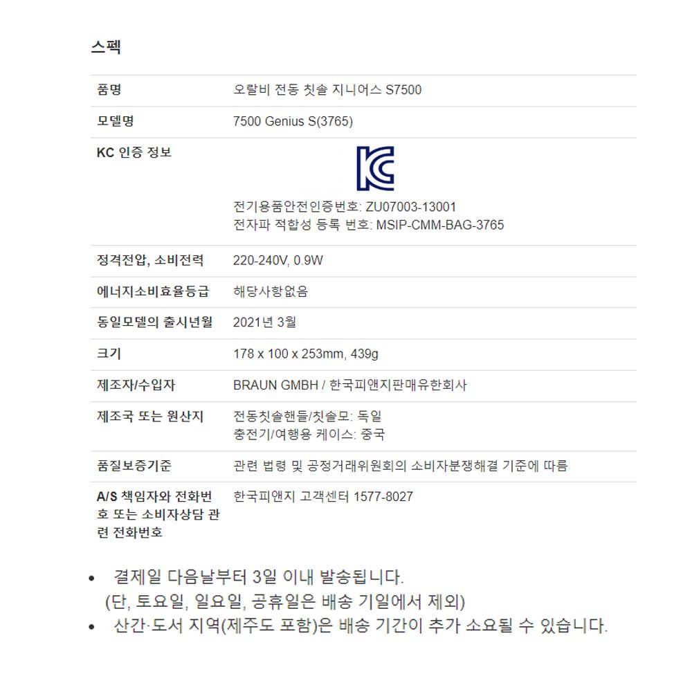 오랄비 전동칫솔 충전식 진동칫솔 무선 구강청정기 휴대용 가정용 치아칫솔 브라운 지니어스 / 다모아아토즈님의 스토어 / 디비디비 / 구매하기 / 특가할인