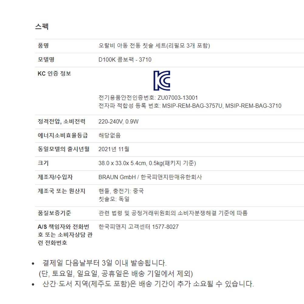 • 오랄비 어린이 전동칫솔 유아 아동 아기 키즈 무선충전식 진동칫솔세트 휴대용 리필모3개포함 가정용 구강청정기 리필모3개포함 추천