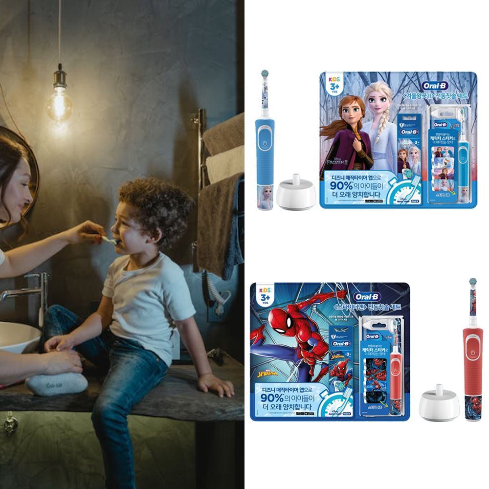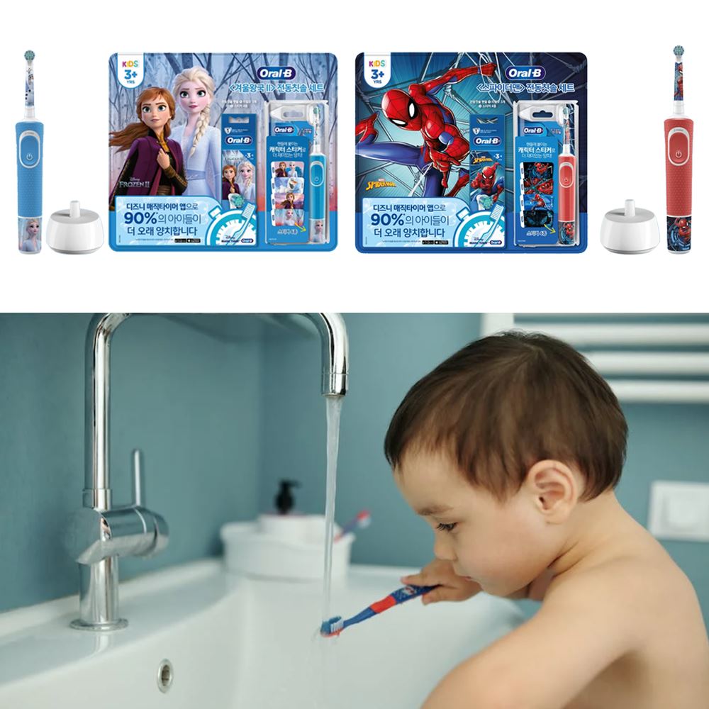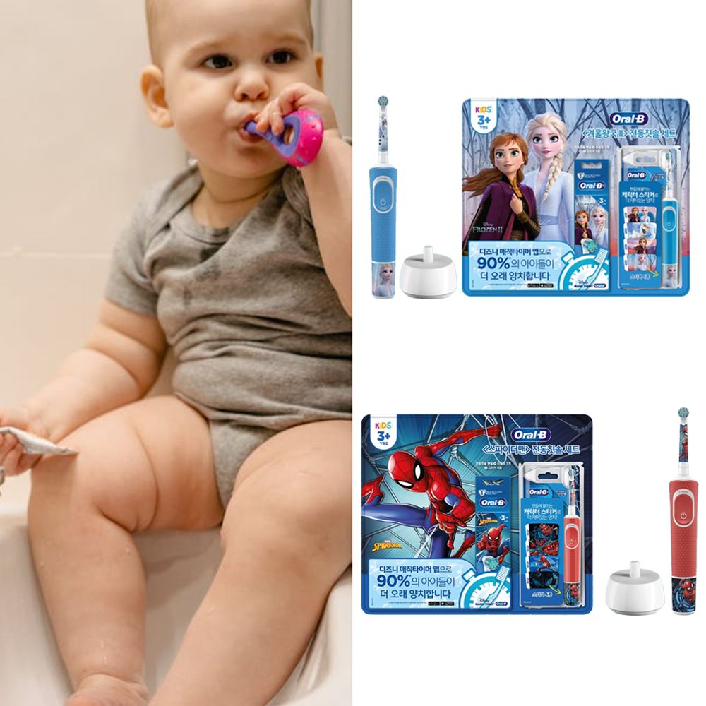 • 오랄비 어린이 전동칫솔 유아 아동 아기 키즈 무선충전식 진동칫솔세트 휴대용 리필모3개포함