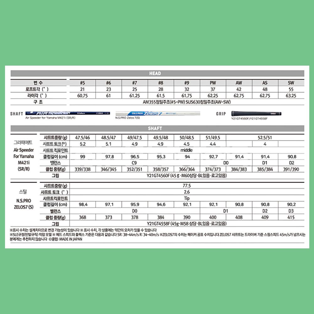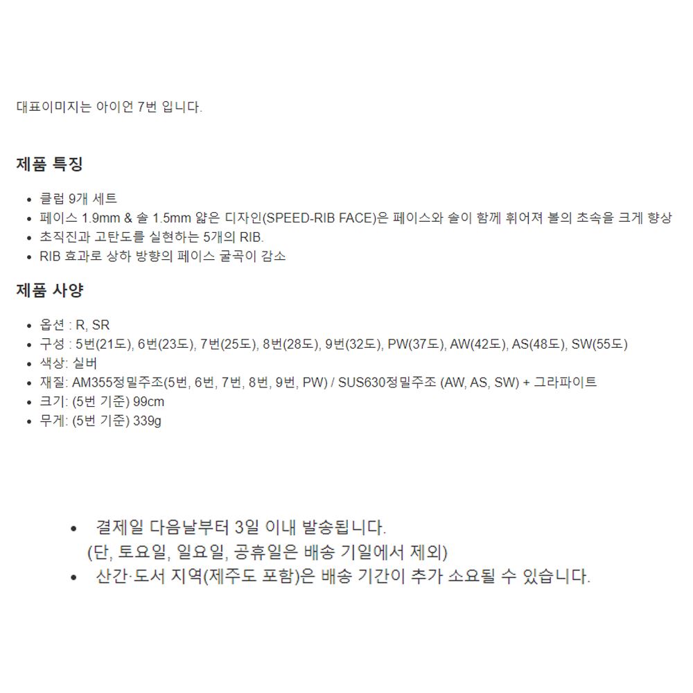 구성 : 5번(21도), 6번(23도), 7번(25도), 8번(28도), 9번(32도), PW(37도), AW(42도), AS(48도), SW(55도)