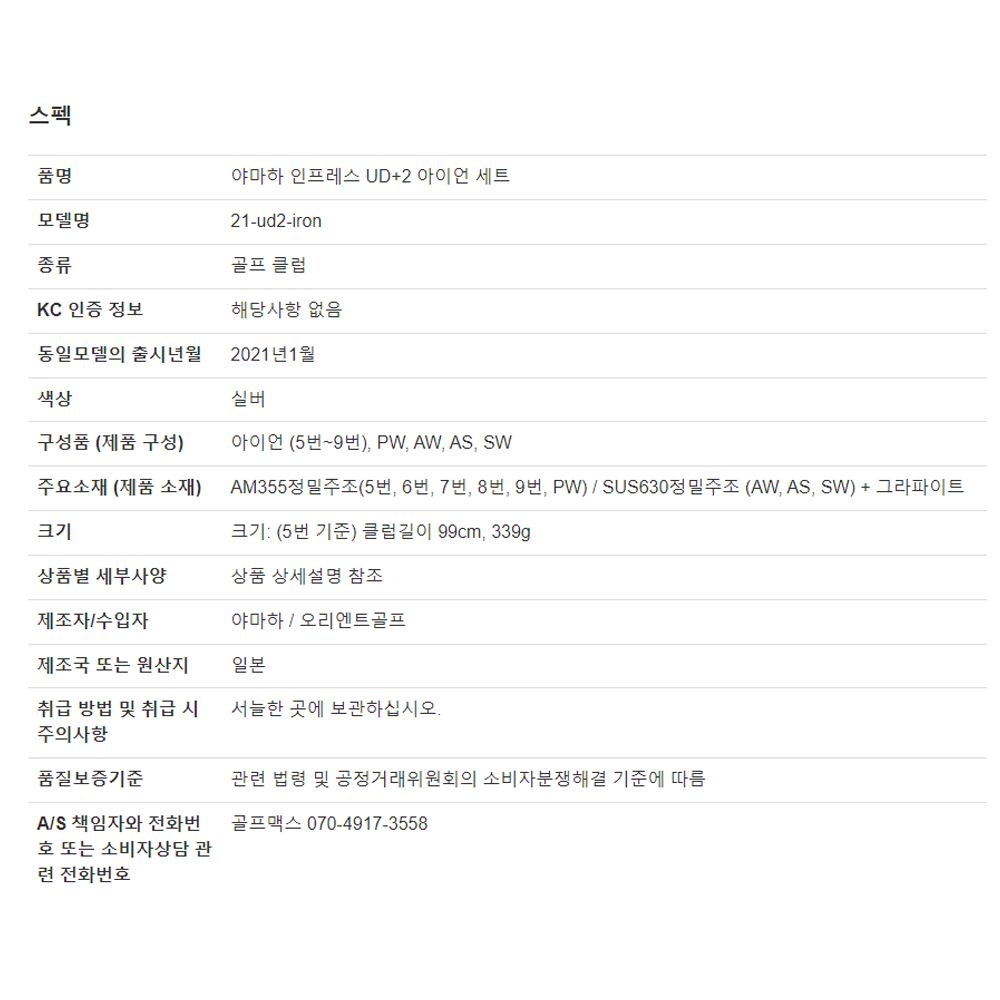 • 야마하 아이언세트 남성용 5번 6번 7번 8번 9번 PW AW AS SW 아이언 골프채 9개 세트 인프레스UD+2 아이언세트 21-ud2-iron 추천