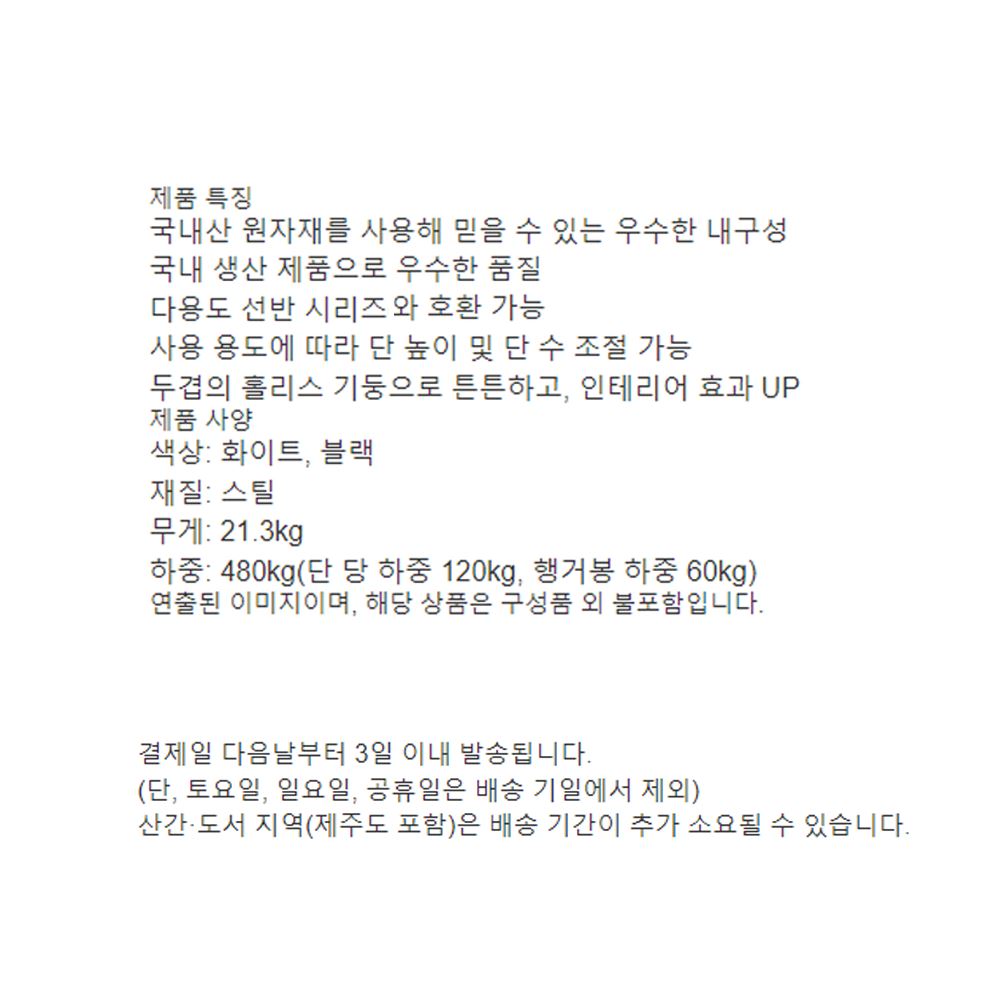 하중: 480kg(단 당 하중 120kg, 행거봉 하중 60kg)