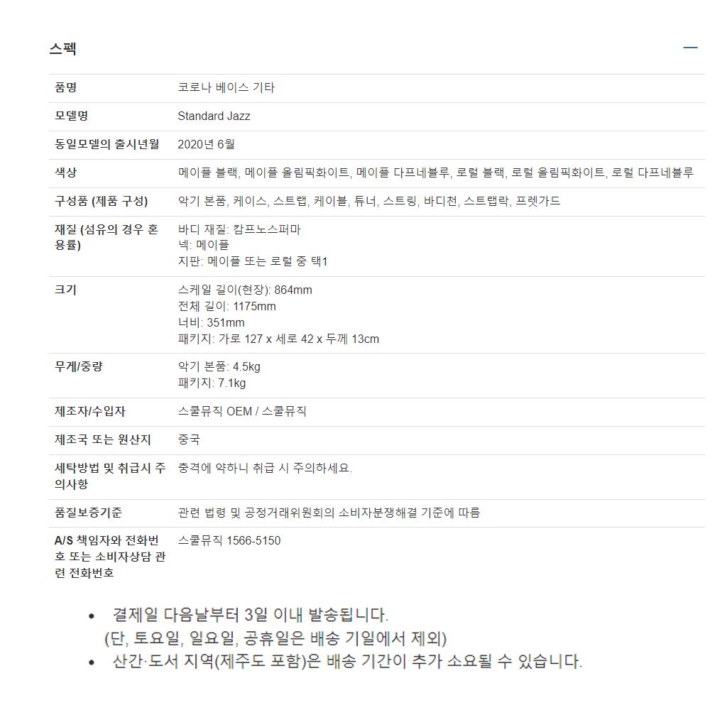 • 코로나 베이스 기타 풀패키지 스탠다드재즈 연주용 입문용 초보자연습용 Bass Guitar 추천