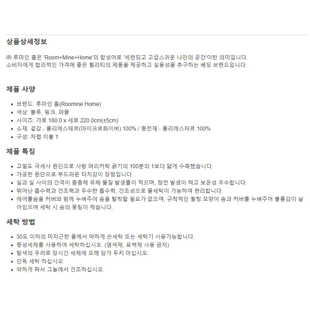 루마인홈 극세사차렵이불 퀸/q더블사이즈침구극세사이불 봄여름가을겨울사계절간절기침대이불 2인용손님용먼지없는이불 / 다모아아토즈님의 스토어 / 디비디비 / 구매하기 / 특가할인