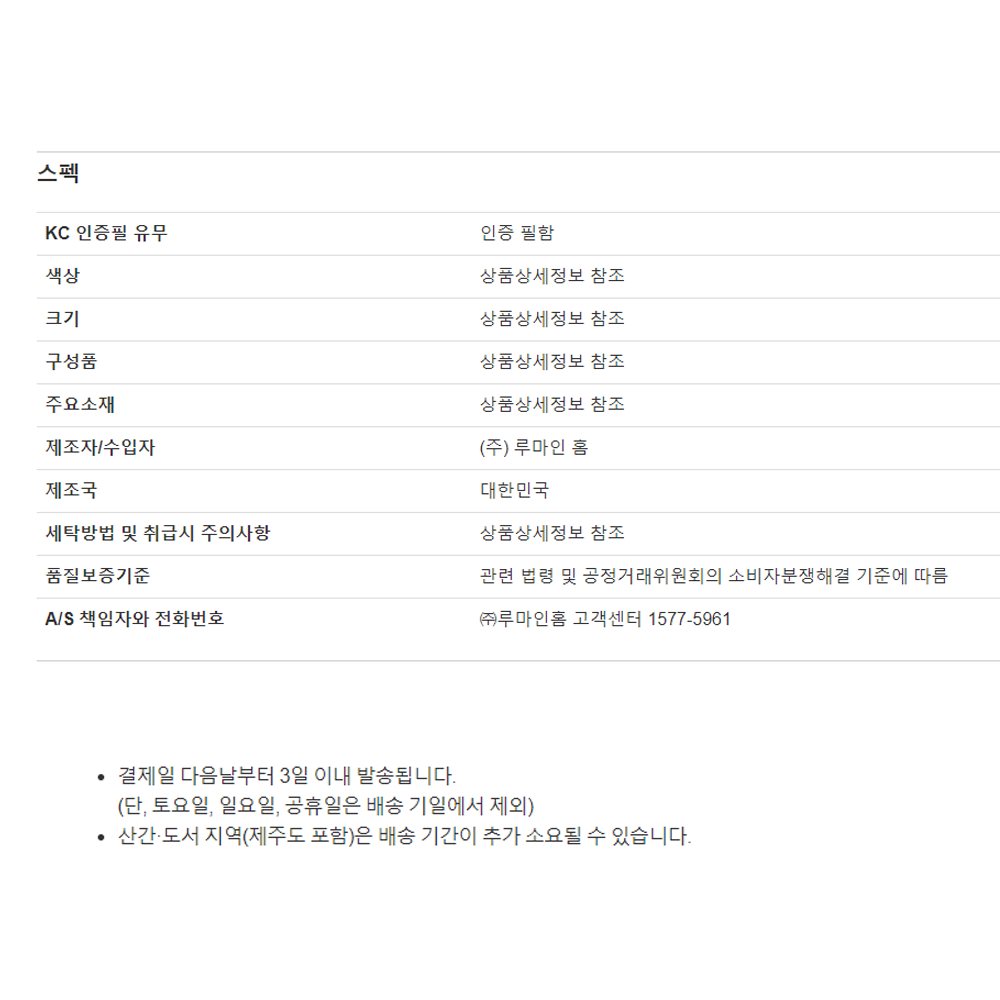 • ㈜루마인홈은 'Room+Mine+Home'의 합성어로 '세련되고 고급스러운 나만의 공간'이란 의미입니다. 소비자에게 합리적인 가격에 높은 품질의 제품을 제공하고, 실용성을 추구하는 베딩 브랜드입니다.