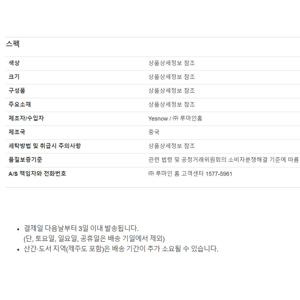 ㆍ 사용 중 발생한 하자의 환불/교환/수리 등은 공정거래위원회 소비자분쟁해결기준에 준하여 처리됩니다. (제조사/브랜드 A/S센터로 문의)