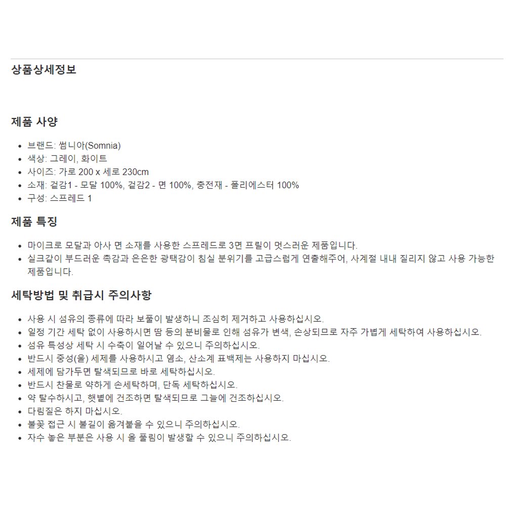 썸니아 모달면스프레드 퀸/Q사이즈침구류모달아사면스프레드이불 봄여름가을겨울사계절베드침대스프레드2인용손님용순면 / 다모아아토즈님의 스토어 / 디비디비 / 구매하기 / 특가할인
