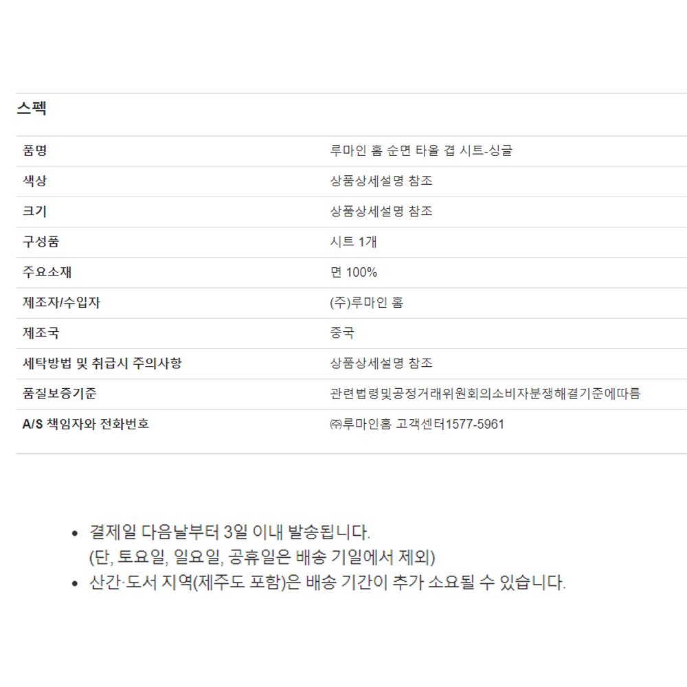 • 루마인홈 타올겹시트 싱글 / S사이즈침구이불 봄여름가을겨울사계절 간절기시트이불 침대이불1인용손님용순면이불요 먼지없는이불