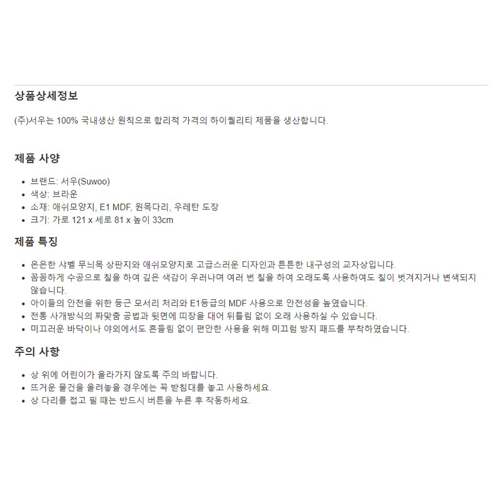 • 서우 다용도 직교자상 121x81x33cm / 집들이상큰대형나무밥상 제사상좌식접이식교자상 6인용테이블손님상