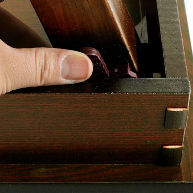 전통 사개방식의 짜맞춤 공법과 뒷면에 띠장을 대어 뒤틀림 없이 오래 사용하실 수 있습니다.