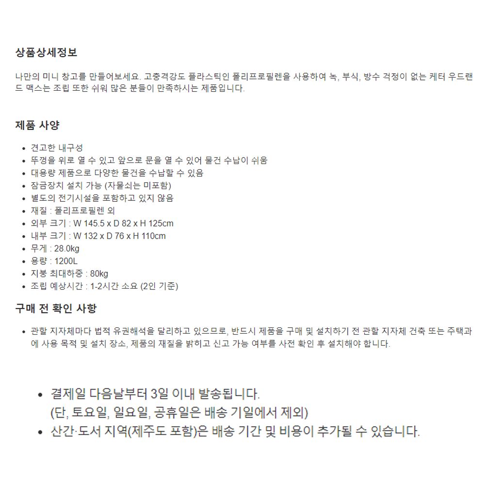 케터 우드랜드 맥스 / 조립식창고 야외보관함 간이창고 야외창고 창고 소형창고 이동식창고 케터창고 조립식건물
