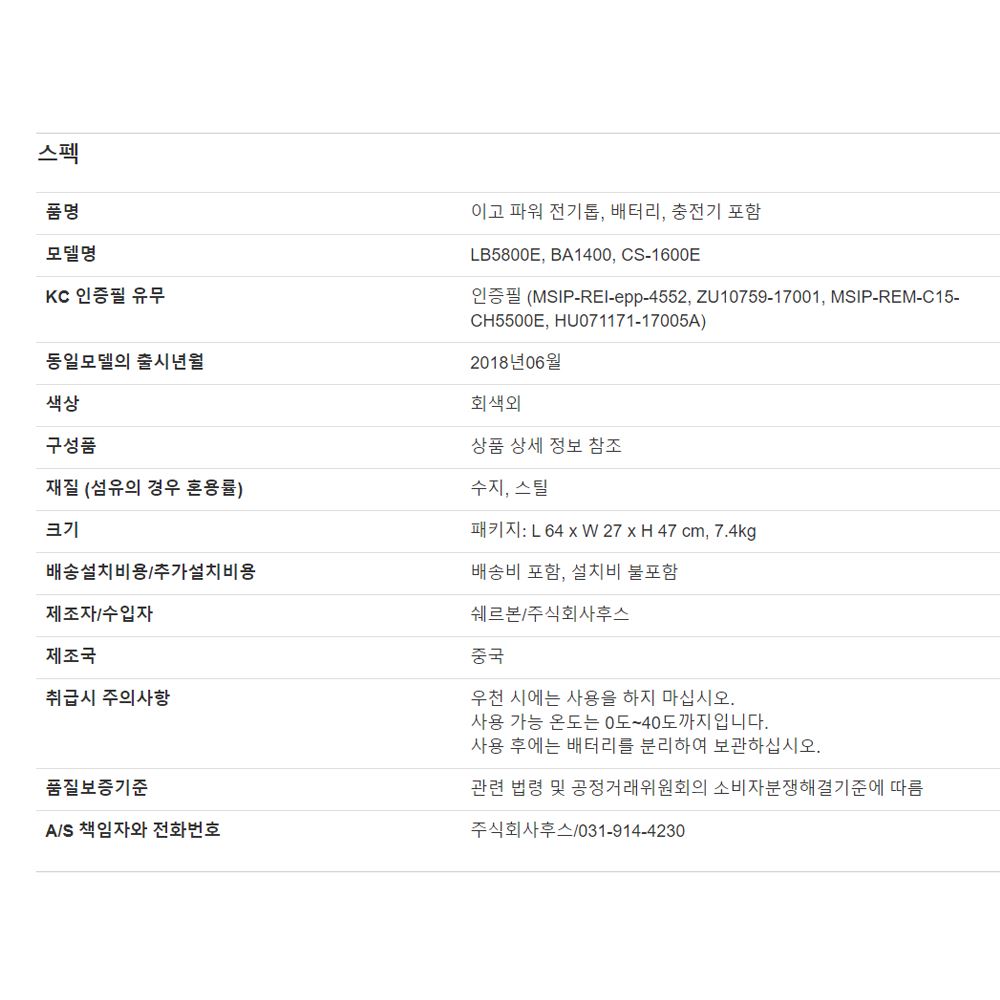 이고 파워 전기톱 (배터리2.5Ah+충전기) / 톱 전동톱 충전톱 목공공구 충전체인톱 충전식전기톱 무선전기톱 / 다모아아토즈님의 스토어 / 디비디비 / 구매하기 / 특가할인
