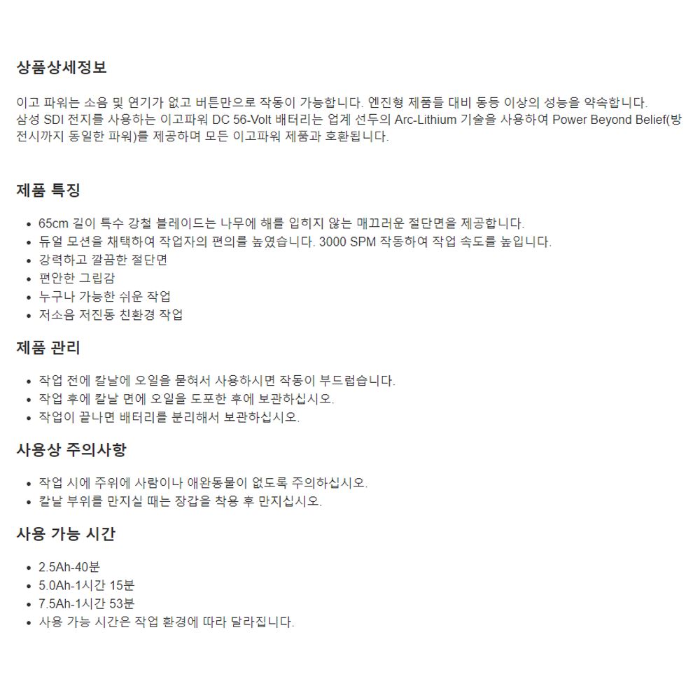 • 이고 파워 충전식 전정기 (배터리불포함)/ 전기전정기 제초기 무선제초기 충전식전정기 충전 예초기 충전식예초기
