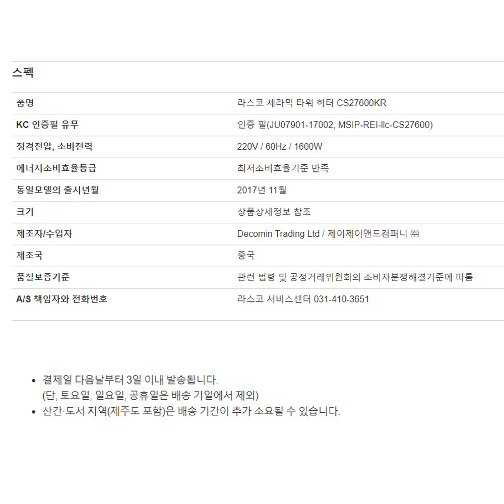 라스코 세라믹 타워히터/전기난로난방기구스탠드회전식야외가정용업소용품사무실카페야외테라스 베란다정원가든인테리어 / 다모아아토즈님의 스토어 / 디비디비 / 구매하기 / 특가할인